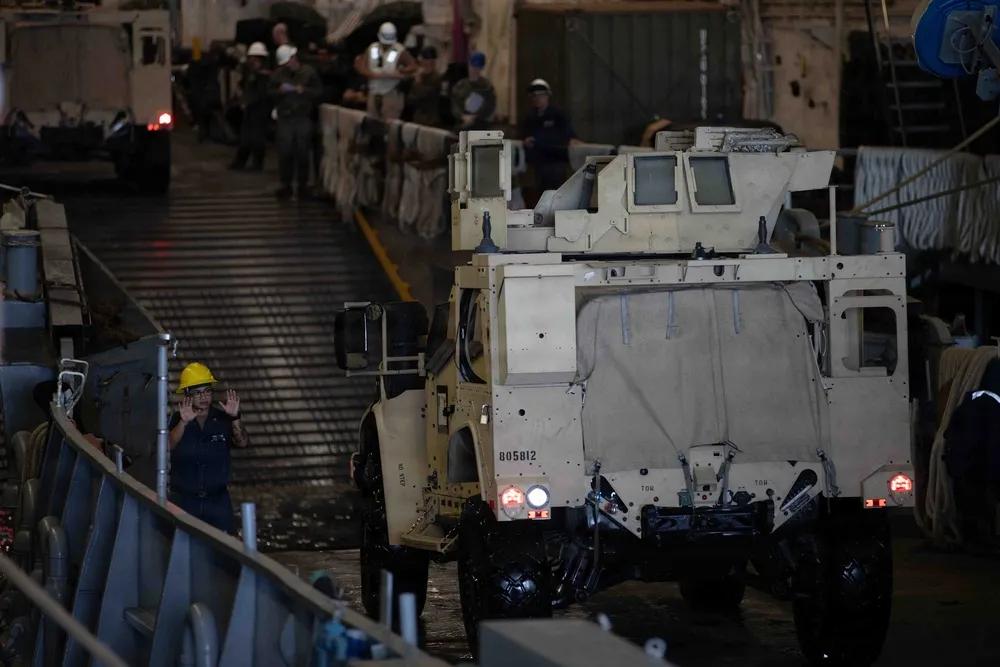 美国持续在委内瑞拉周边海域进行威慑行动,还派世界上最小的登陆艇。 2025年10月16日,加勒比海,美军攻击艇中队2的登陆艇分队1662的美军水手在加勒比海航行期间,准备进入圣安东尼奥级两栖运输舰“劳德代尔堡”号(LPD 28)的舱口。美军部队部署到加勒比海,以支持美军南方司令部的任务、国防部指挥的行动,以及特朗普总统在打击“非法毒品贩运”和保护美国国家安全方面的优先事项。