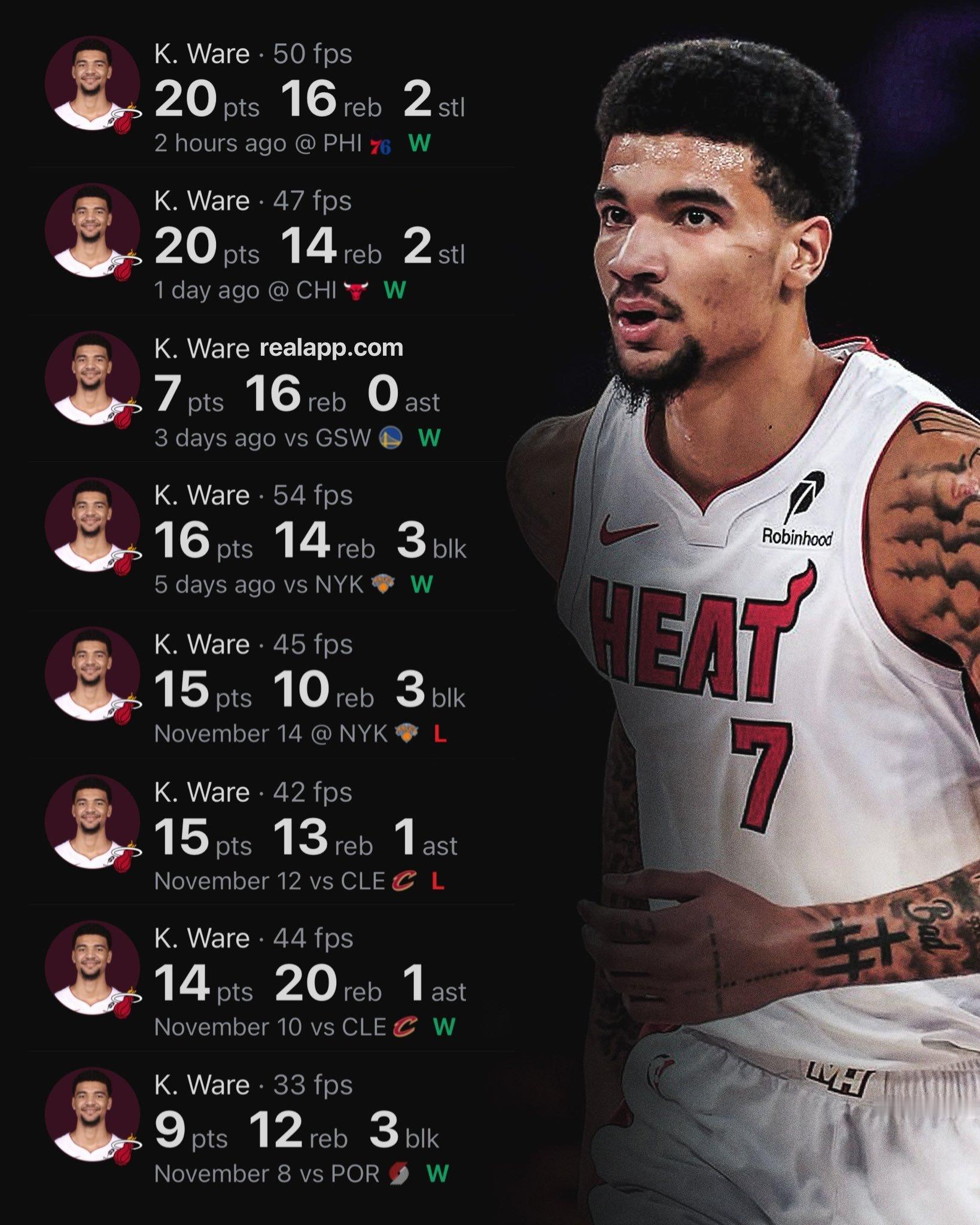 赛季初的低迷过去了,二年级的“迈阿密自研文班”威尔开始挑大梁。连续8场篮板上双,近四场场均15篮板。(重点是出场时间也并不算长)有顺位有运动能力有三分有篮板,在新版极速热火属于宝贝了