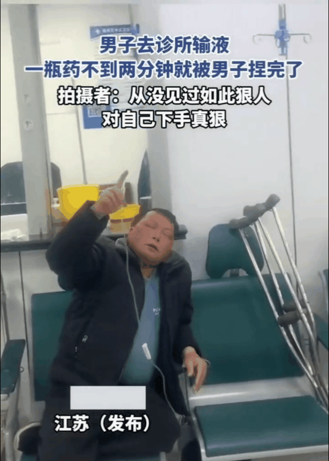 男子去诊所输液,一瓶药被他不到两分钟捏完!我就想知道这样会不会对人身体造成伤害!