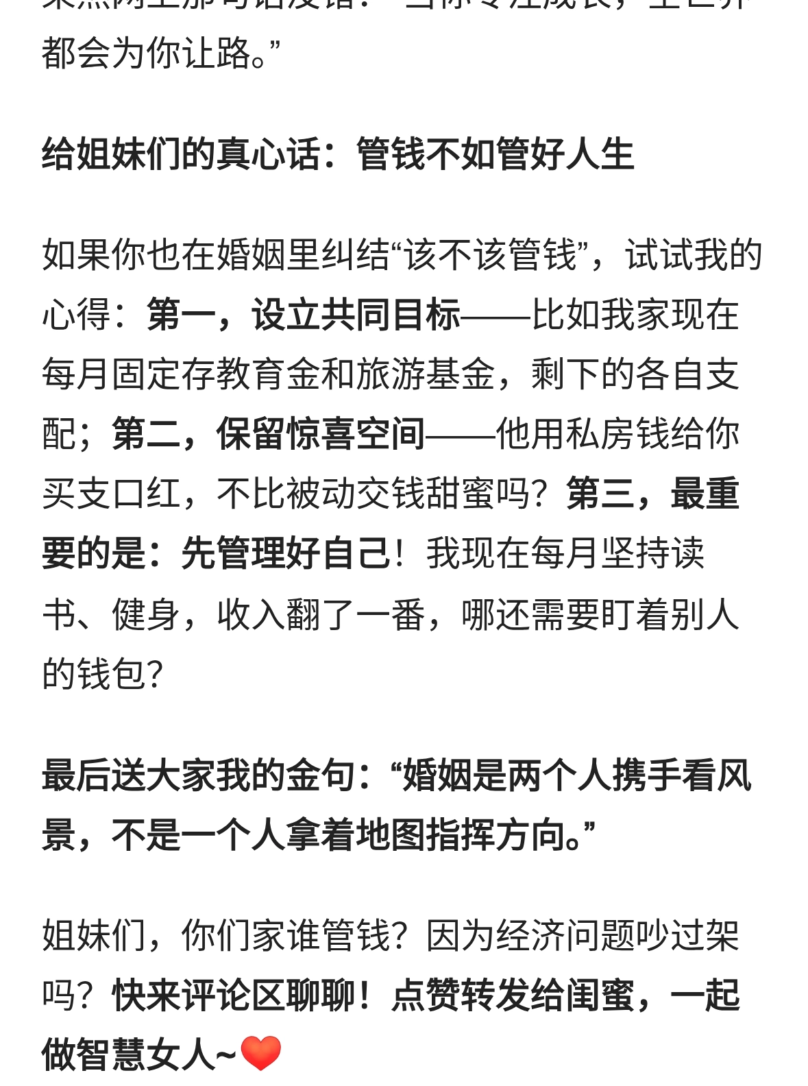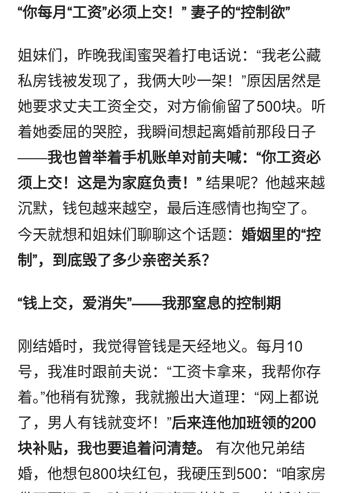 “你每月“工资”必须上交!” 妻子的“控制欲”。