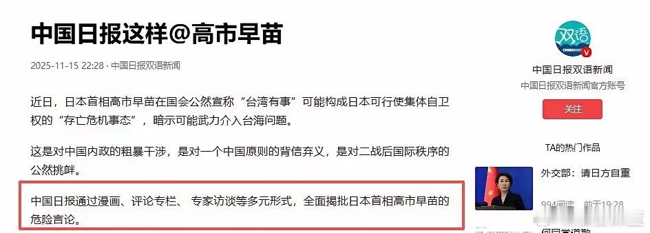 高市早苗风波后首次回应,称涉台立场没变,外交部回应!