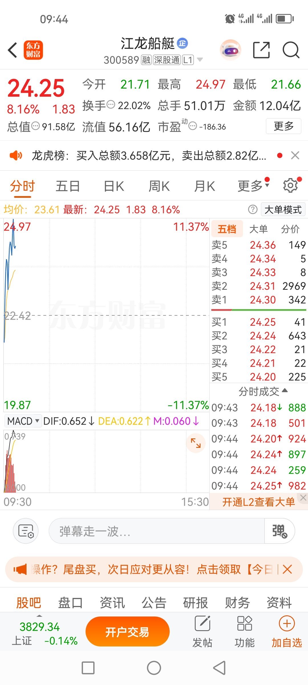 江龙船艇300589已清仓出来,落地为安,见好就收了!