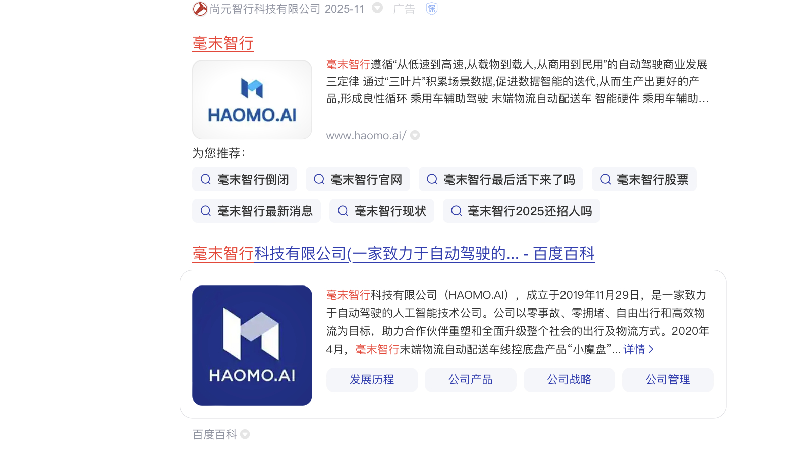 毫末智行官网确实已经打不开了。多家媒体也证实:公司已通知员工 11 月 24 日起无须再到岗,业务几乎停摆,这家公司从高调创业到如今收尾,只走了 6 年。我印象最深的是 2019 年刚出来那阵,主打 智能驾驶、HPilot、末端配送车。但自动驾驶这条赛道,真的太烧钱、太艰难了。👉 你觉得自动驾驶创业,到底难在技术、落地,还是商业模式?