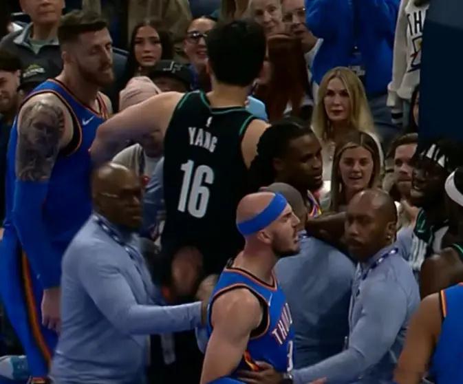 杨瀚森炸场!NBA首三分+拉架名场面:这波“文武双全”直接杀疯了! 开拓者对阵联盟第一雷霆的战场,今天被19岁的中国小将杨瀚森彻底点亮——不止是创纪录的NBA生涯首记三分,更是冲突瞬间“拉走暴怒哈腾”的冷静劝架,这波“能投能劝”的操作,直接把新赛季的惊喜值拉满!北京时间11月24日的这场对决,开拓者虽首节就18-39落后21分,但杨瀚森的登场成了全场最亮眼的变量:首节便获得轮换机会的他,第二节在外线接球果断出手,篮球空心入网的瞬间,不仅是个人NBA生涯首记三分,更是中国内线球员在NBA赛场的又一突破(要知道,身高2米18的杨瀚森,能在外线稳定投射本就是天赋之外的努力)。而更圈粉的名场面,出现在第二节末段的冲突时刻:雷霆球员吕佩尔与开拓者的哈尔滕施泰因爆发口角,哈腾情绪暴怒、眼看冲突升级时,杨瀚森从身后快步上前,稳稳拉住哈腾的手臂将其带离现场,动作干脆又不失分寸——一边是赛场上敢投敢打的“得分利刃”,一边是冲突里冷静控场的“氛围调解员”,这反差感直接让网友喊出“杨瀚森这情商+球商,未来稳了”!尽管开拓者最终不敌雷霆,但杨瀚森的1分31秒登场时间里,藏着太多值得期待的细节:首三分展现了他的外线投射潜力,而劝架的反应力,更体现了他在球队里的融入度——作为登陆NBA的中国年轻内线,他没被“菜鸟身份”束缚,反而用“敢出手+会处事”的表现,在联盟第一的对手面前,亮出了属于中国球员的底气。从CBA的统治级内线,到NBA赛场的“首分+首三分”,再到今天的“拉架名场面”,杨瀚森的每一步都在打破外界对“中国内线”的刻板印象:他不止会在内线拼抢,更能在外线开炮;不止能打硬仗,更懂怎么在赛场里“稳节奏”。