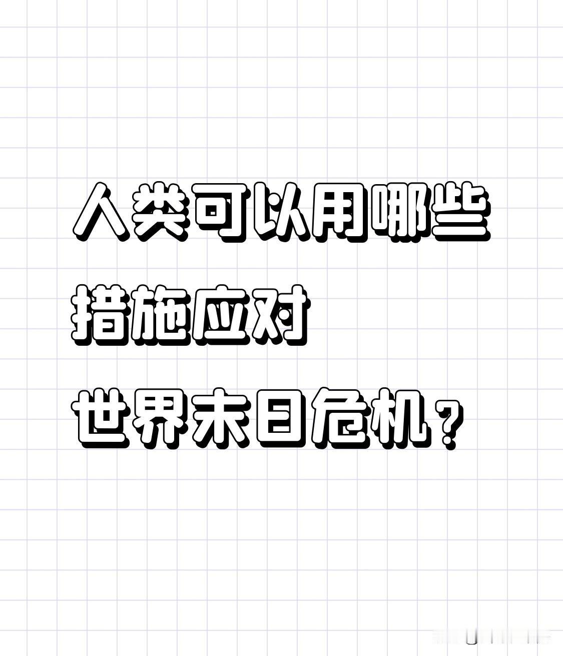 人类可以用哪些措施应对世界末日危机?面对可能的世界末日危机,人类可以从科技、生态、社会和国际合作等多个方面采取措施: 科技层面 ● 太空探索与殖民 ○ 建立太空基地:在月球、火星等天体建立科研和生活基地,作为人类的“备份”。例如,美国国家航空航天局(NASA)和SpaceX等机构都在积极推进火星探索和殖民计划。 ○ 小行星防御:研发能够监测和改变小行星轨道的技术,如使用引力牵引器、动能撞击器等,避免小行星撞击地球。 ● 能源技术革新 ○ 开发可再生能源:加大对太阳能、风能、水能、生物能等可再生能源的研发和利用,减少对化石燃料的依赖,降低能源危机风险。 ○ 探索新型能源:如可控核聚变,若能实现商业化应用,将为人类提供几乎无限的清洁能源。 生态层面 ● 环境保护与修复 ○ 应对气候变化:通过减少温室气体排放、增加森林覆盖等方式,减缓全球气候变暖的速度,降低极端气候事件的发生频率。 ○ 保护生物多样性:建立自然保护区、加强对濒危物种的保护和研究,维护生态系统的平衡和稳定。 ● 可持续发展 ○ 推行循环经济:减少资源浪费和环境污染,实现资源的高效利用和循环利用。 ○ 发展生态农业:采用生态友好的农业生产方式,减少化学农药和化肥的使用,保障粮食安全。 社会层面 ● 教育与意识提升 ○ 普及科学知识:提高公众对世界末日危机的认识和理解,增强应对危机的意识和能力。 ○ 培养危机意识:通过教育和宣传,让人们意识到危机的潜在威胁,提高全社会的应急响应能力。 ● 储备与应急管理 ○ 建立物资储备体系:储备足够的食品、药品、能源等物资,以应对可能的全球性灾难。 ○ 完善应急响应机制:制定应急预案,加强应急演练,提高政府和社会的应急处置能力。 国际合作层面 ● 信息共享与交流 ○ 建立全球监测网络:共享关于天文、气候、环境等方面的监测数据,及时发现潜在的危机。 ○ 加强科研合作:各国科学家共同开展研究,分享科研成果,提高应对危机的科技水平。 ● 制定国际规则与协议 ○ 应对全球性问题:如气候变化、核安全等,通过国际协议和规则来规范各国行为,共同应对挑战。 ○ 协调资源分配:在危机发生时,合理分配全球资源,确保各国能够共同度过难关。