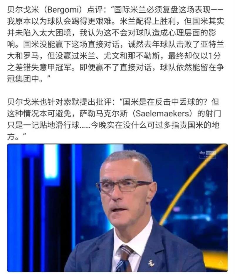 许多内拉从上赛季开始就一直骂太子,夏窗恨不得他走。但那么多攻击他的人也不得不承认,无论是俱乐部还是国家队,很多进攻机会都是从太子这边发起的。相对比的话,国家队更明显,意大利进攻力弱到换哪个教练来都没辙。即使太子缺点明显,但你意大利倒是找个更好的替代啊?其实本场,我对索莫更加不满,并不是本场的这一个失球,严格说来,索寞从对战尤文就开始不对劲了。如果一个好门将,一个赛季可以帮助球队多拿积分,而现在的索莫对国米而言,只能是拖累……好吧,先看看附图中各路人等对索寞的评价吧。