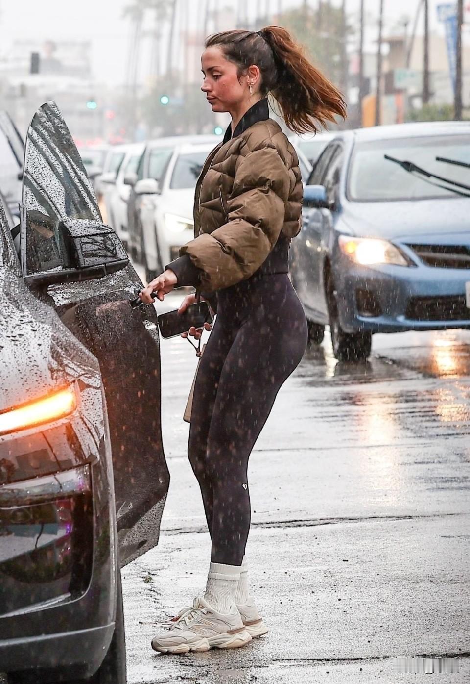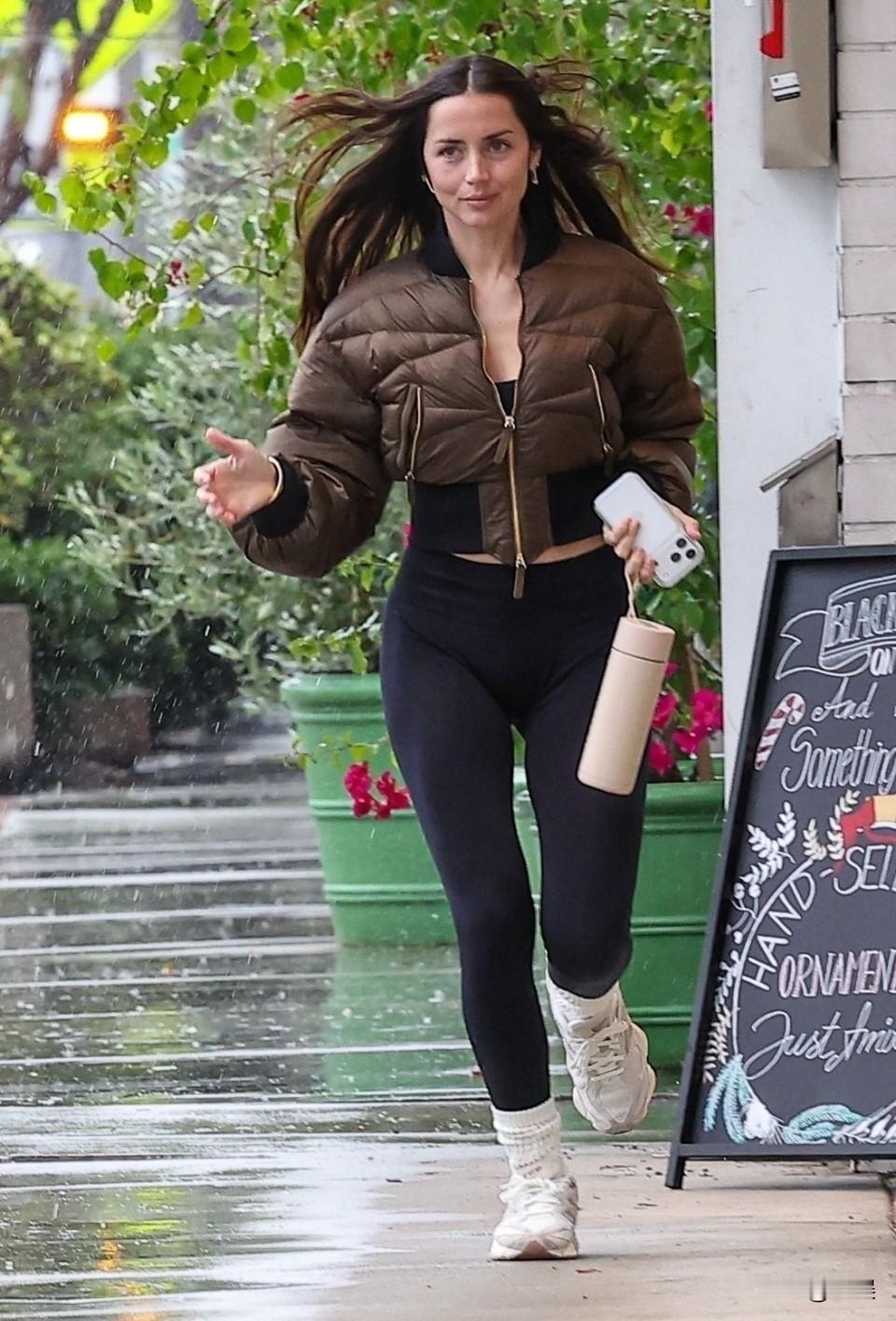 近日,安娜·德·阿玛斯街拍更新。 安娜·德·阿玛斯出现在下雨天的圣莫尼卡街头。她身穿一件新百伦的海斜纹羽绒服,手里拿着弗兰克·格林的饮水杯。 我刚想说她的街拍还挺自然的,然后意识到了她是只空穿了件羽绒服还是敞开的[笑哭]我的天啊,不冷吗?安娜德阿玛斯 欧美女星