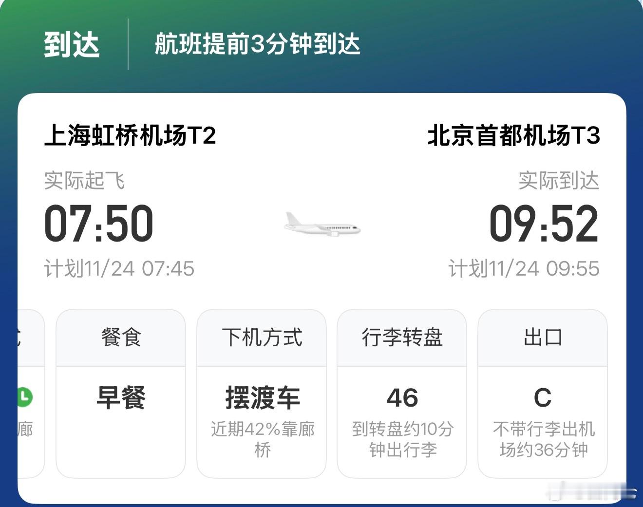 国航落北京T3?东航一直都是T2,熟悉了整个打车流程,感觉贼快。今儿落T3第一感觉就是太大了,打车还走错了地方,说出租车和网约车不是一个地方。网约车要过天桥,H区B2。从下飞机,上摆渡车,再到上网约车,用了接近40分钟航旅纵横预估36分钟,是准确的。
