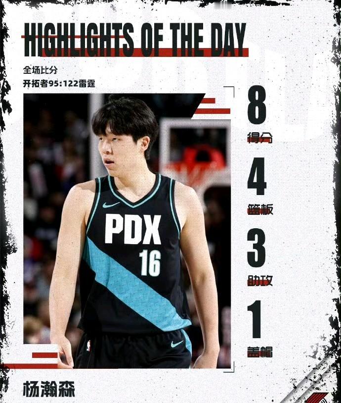 对阵雷霆,虽然开拓者95-122输给雷霆27分,但杨瀚森NBA生涯总得分已经来到26分,超越周琦,排在NBA中国球员中的第五位,前面是巴特尔的156分。 全场出战18分钟,投篮11中3(三分6中1),罚球1中1,得到8分4篮板3助攻1抢断1盖帽,正负值-6。
