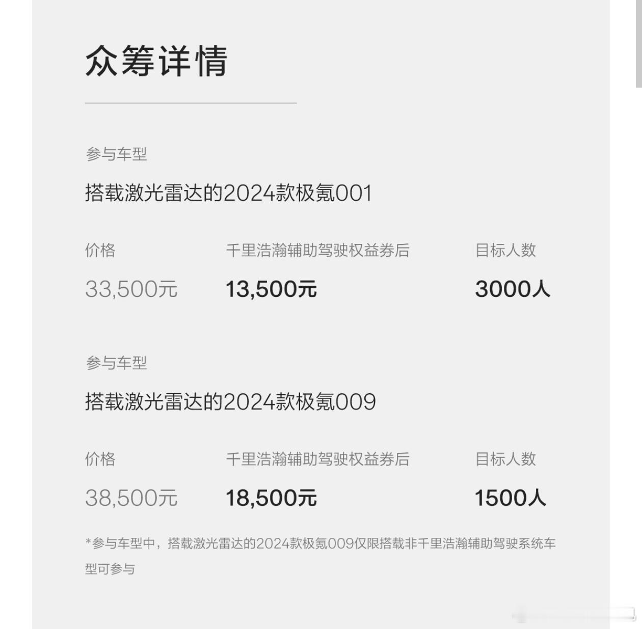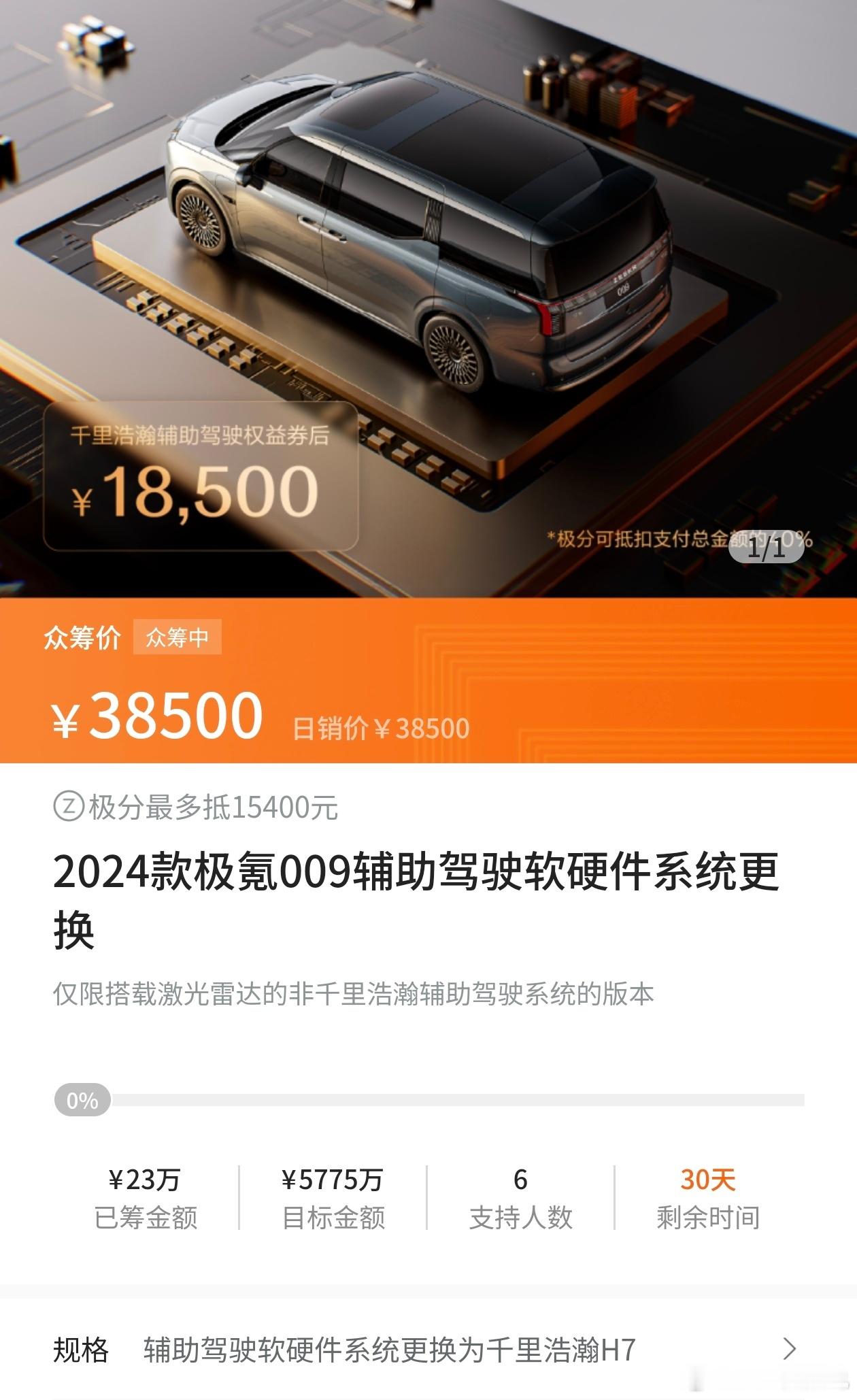 来了,有些事情是需要一些交代。这次001只需13500的更换智驾硬件,009则是18500,如果了解过其他友商更换智驾硬件价格的朋友应该都知道这个价格可以说是非常有诚意的了。001只需要3000人参与即可众筹成功,009则是要1500人,我觉得这次众筹大概率问题不大。众筹一共就一个月的时间,想换的别忘了。关于要不要换智驾的问题很简单,如果车子打算多开几年,换个智驾这个价格真的很实惠了。可以看看图五有多少硬件需要更换。如果可能明年或者后年就换车的,我觉得就没太大必要,其实也有不少老001车主已经把这个智驾抵扣钱拿去买新车了。