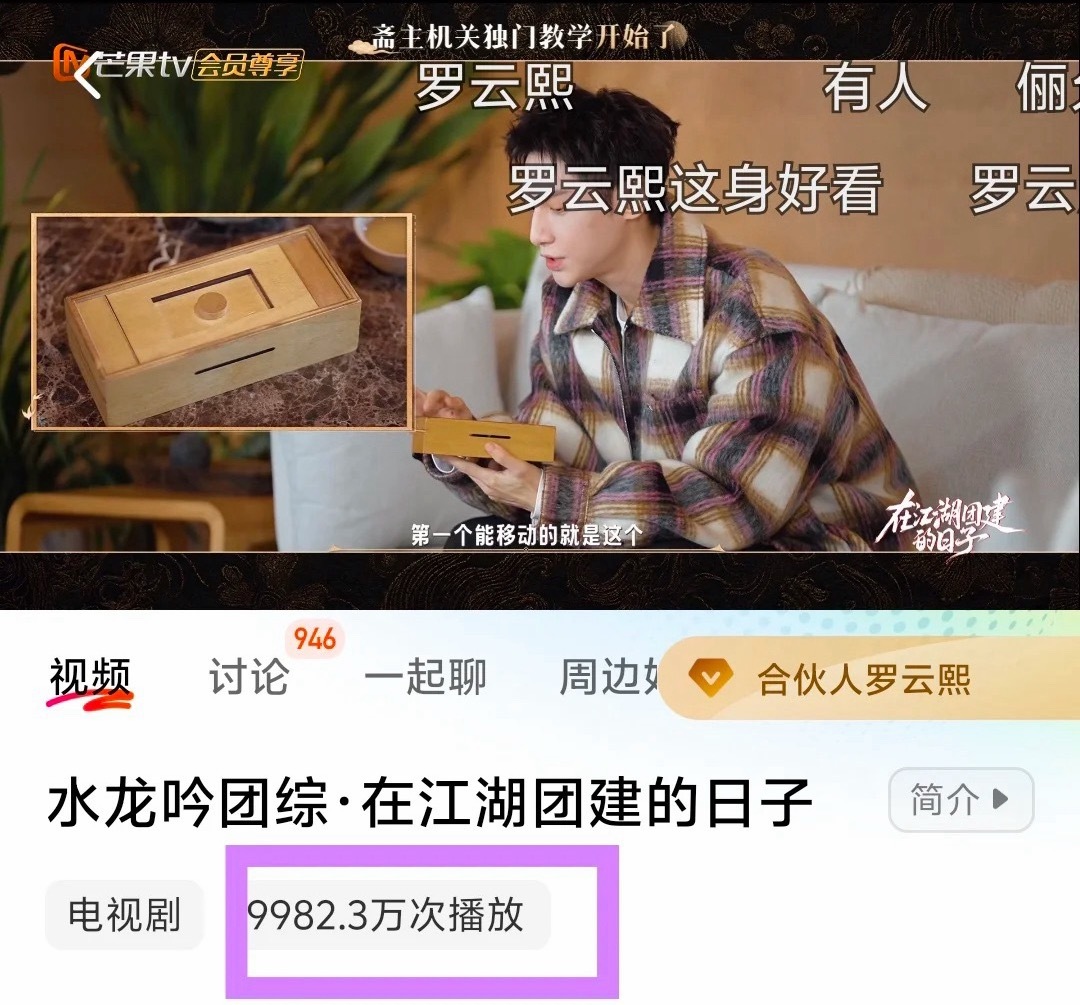 罗云熙水龙吟团综中午更新第六集,马上要破亿了。
