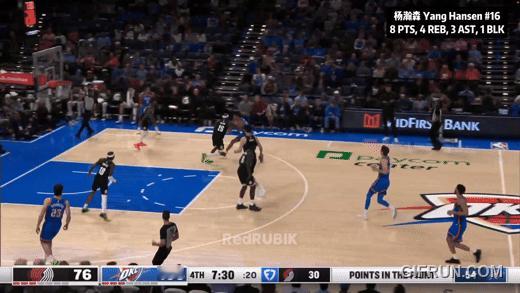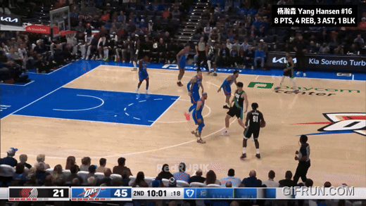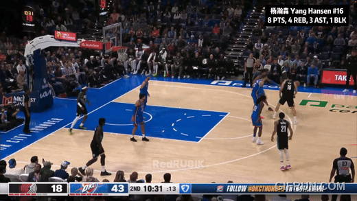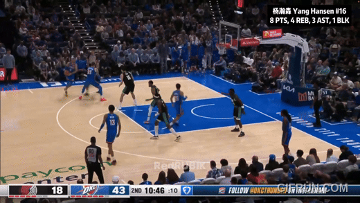 今天杨瀚森8分4篮板3助攻,且对面是上季冠军雷霆双塔。完美试炼关。有好有坏,有来有往,恩怨都齐了。开局不利:第一节末尾,弱侧补位,慢了一拍:防守沟通,移动,也许想补亚历山大?但终究是吃了个2+1。第二节,一个梦幻步勾手,没进:坐进去,没要到深位,钩射失准。什么时候好起来呢?吸取教训了,一个沉退防挡拆,搞定了卡鲁索,且没让哈腾拿到前场篮板——第一节末那个补位慢一拍,这就补上了。给格兰特递手挡了个远射,掩护扎实,迪恩:不是这墙绕不过啊!然后自己一个挡拆外切,扔了哈腾一个三分。哈腾:欺负我不会三分?!杨瀚森NBA生涯第一个三分。下半场,又给鲁佩特递了一个。重点来了:上半场没成的大梦步伐,下半场施展出来了。上半场,杨瀚森左肩翻身要不到深位,晃右转左失手。下半场,接球就先一个底线翻身,骗动哈腾的重心,翻左肩连勾手。成长了。之后又一个空接扣不提。卡尔森上来就给了杨瀚森一个三分球:替哈腾报仇:不是只你会三分哦。然后迪恩加一个三分:让你欺负我!最后反正落后近40分了,开拓者让杨瀚森投压哨:三不沾。有仇不报非君子:回头干扰了杨布拉德一个,三不沾。当然咯,8分4篮板3助攻,11中3,不算很好看。往好了想,今天雷霆冠军双塔,切特5分,哈腾7分——杨瀚森8分。移动不够快,防不了三分也不是秘密。但梦幻步也晃了,卡鲁索也盖了,打三分也成了,三分球也进了,跟哈腾也算有来有往。该秀的都秀了一遍:这就够了。那个大梦步伐打中哈腾时,哈腾抬头思索了一会儿。让冠军中锋苦恼了。至于雷霆大胜?过去两周七场比赛,亚历山大只打了一个第四节。今天是他本季18场里第9场三节30+。雷霆面前众生平等,杨瀚森已经很好了:得分压了冠军双塔,还进了三分球呢。每一步都是个小开拓,开拓者嘛。