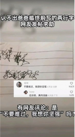 认不出爸爸临终前写的两行字