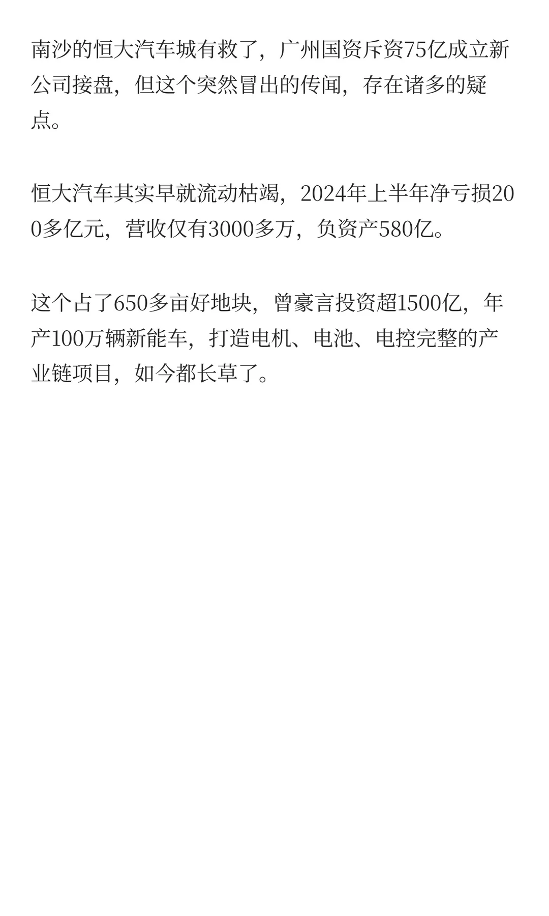 广州国资扛下所有,出资75亿接盘南沙恒大汽