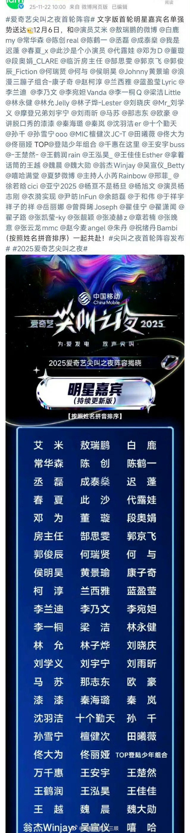 爱奇艺尖叫之夜今年阵容强大,各家对接已陆续发行程,刘宇宁、敖瑞鹏、邓为、白鹿、张
