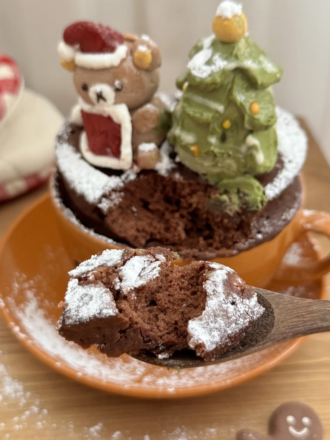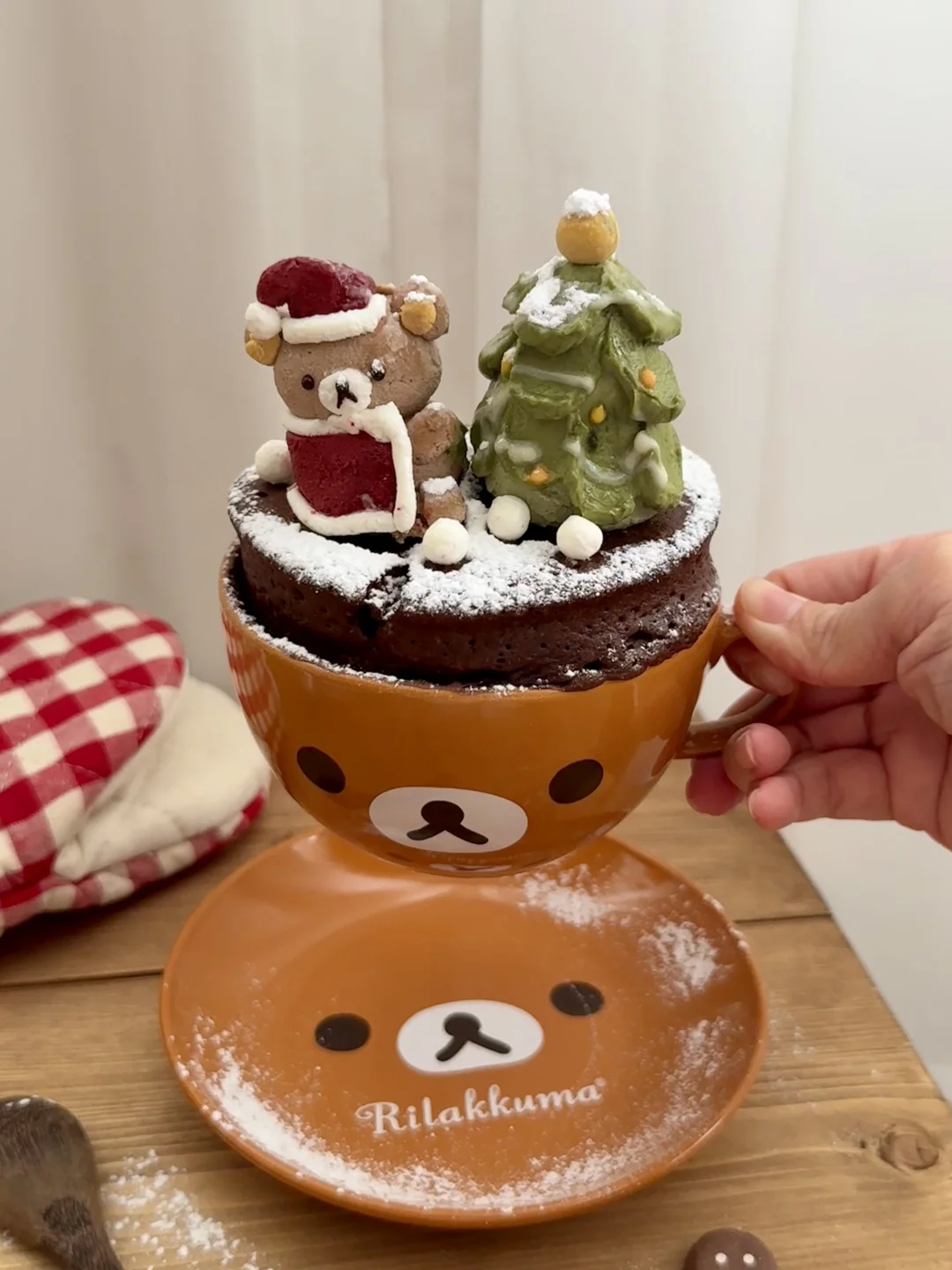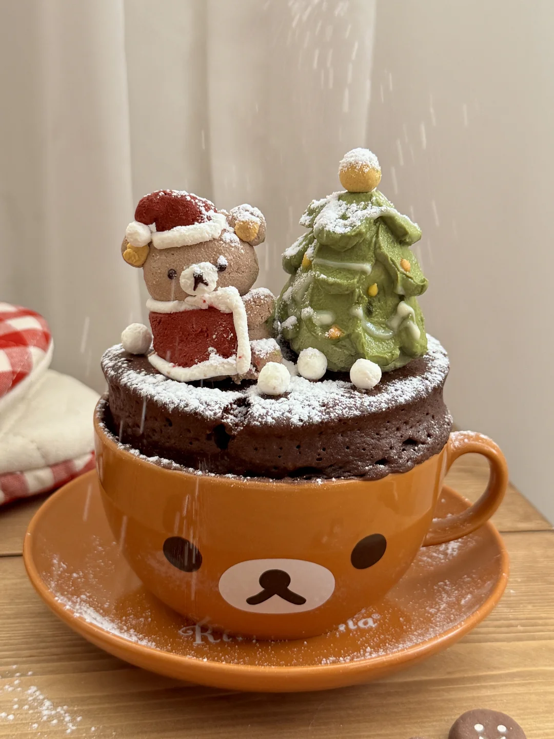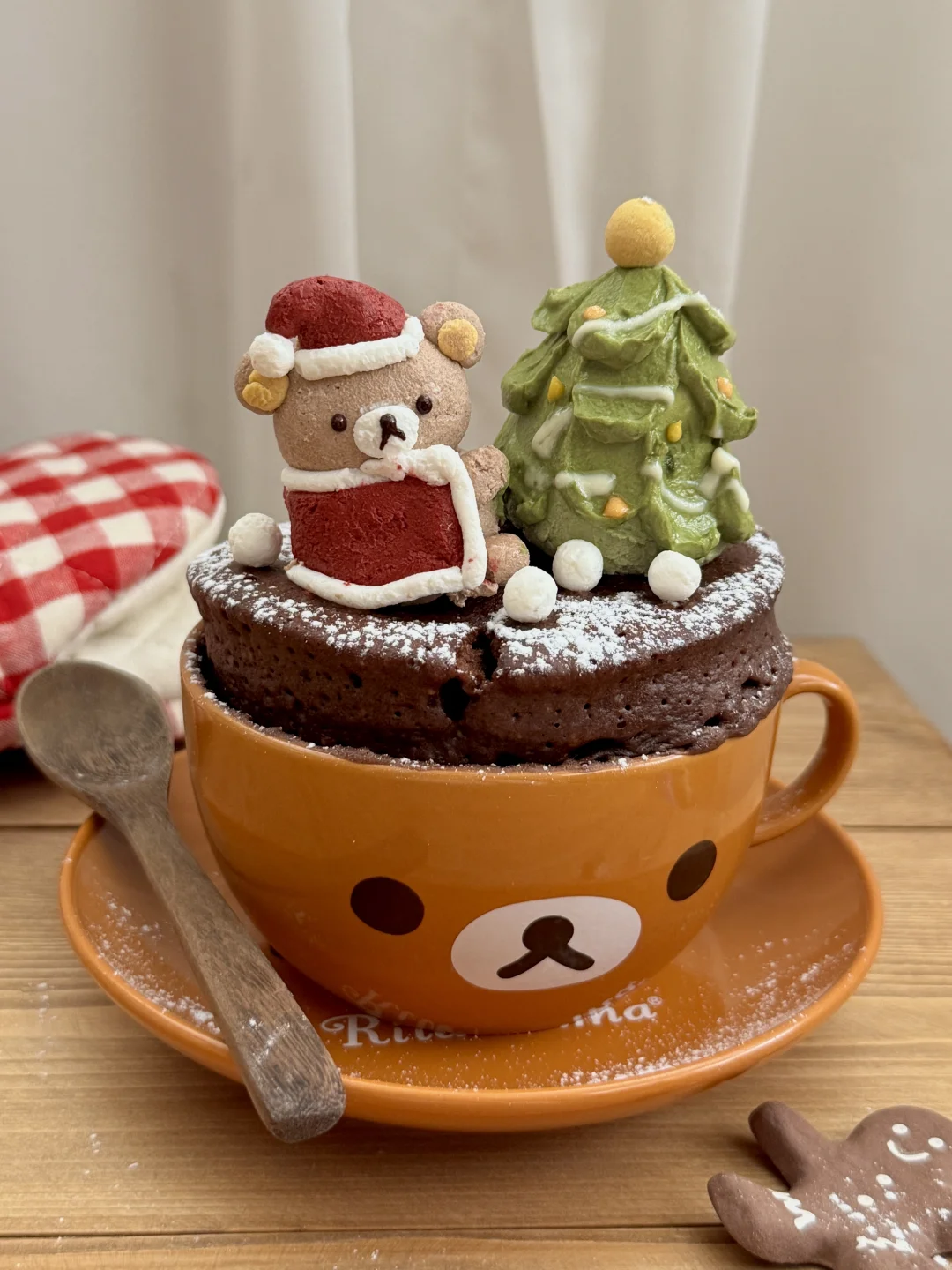 懒人版微波炉蛋糕🧁 再用希腊酸奶捏了只轻松熊 圣诞小甜品get✅ - 材料:鸡蛋1个、牛奶90个、白糖40g 、植物油10g、可可粉10g、低筋面粉80g、泡打粉5g 做法:依次将以上材料混合搅拌均匀,倒入杯子里,微波炉高火3分钟就OK啦