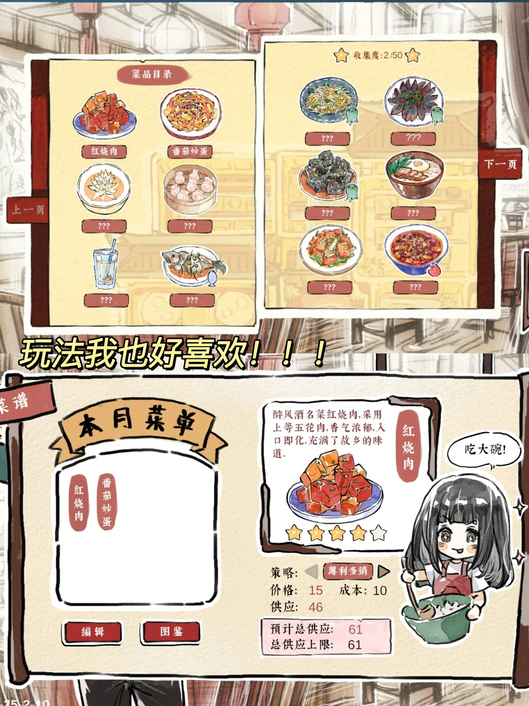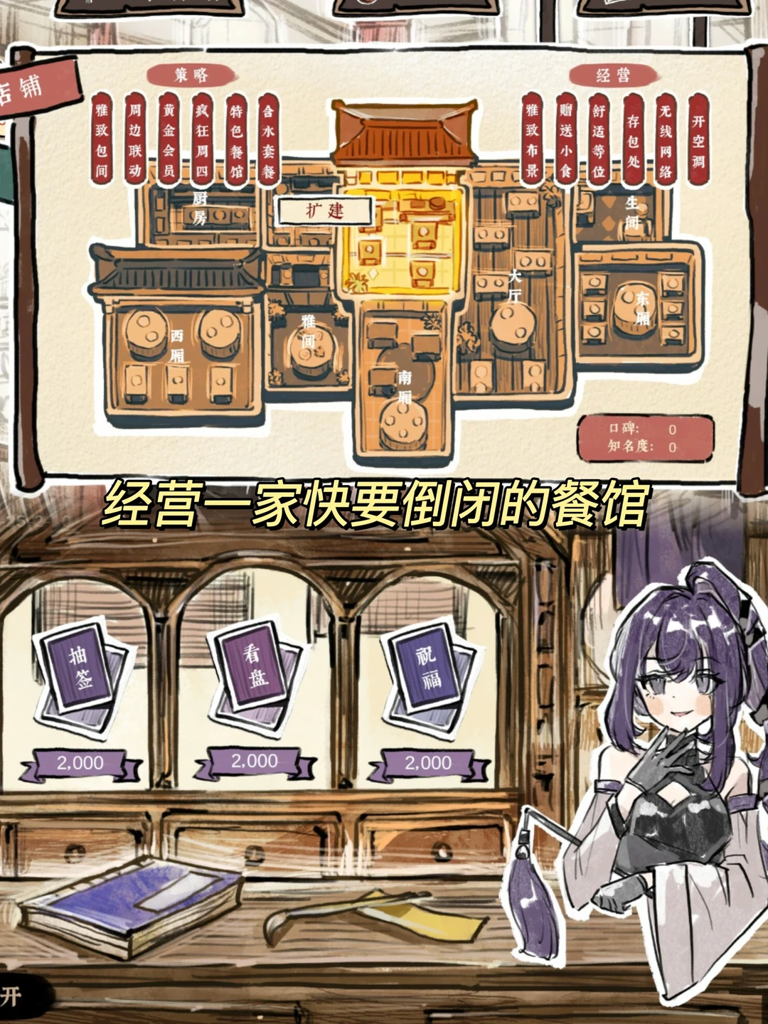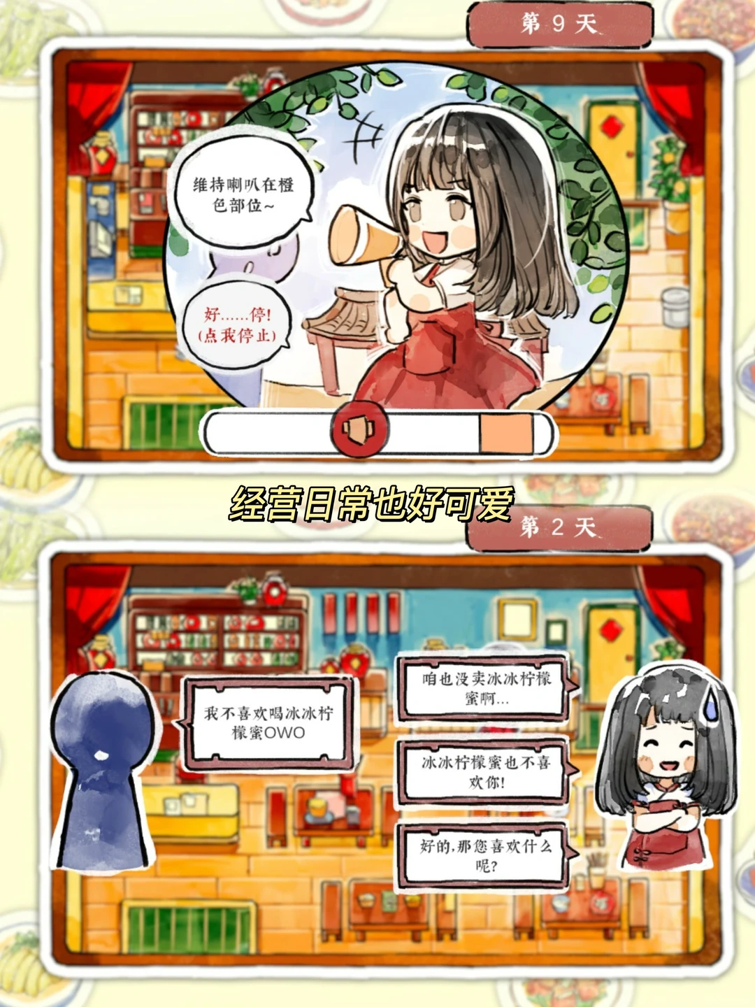 💗游戏的开始,我们要做的就是把倒闭多年的餐厅给好好经营起来~我们不光要研发各种美食料理,餐厅内的所有大事小事都需要我们亲力亲为,煮菜🥬、打扫🧹、招揽顾客、通通不在话下‼️作为一个成熟的餐厅老板,我们还需要擅长理财,来还清100万贷款‼️