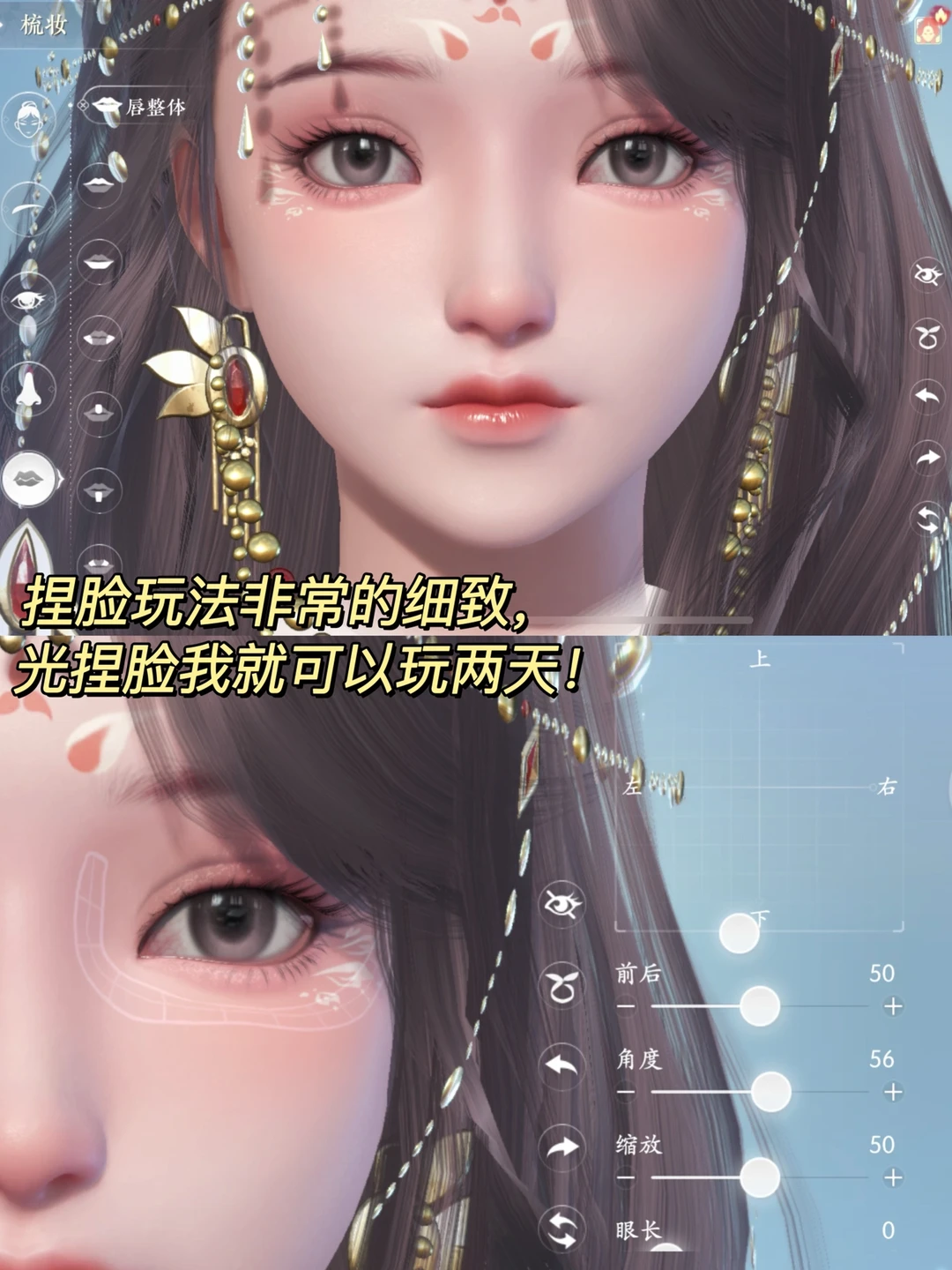 💄捏脸部分的玩法真的非常细致,自由度超高,每一个小细节都可以调~