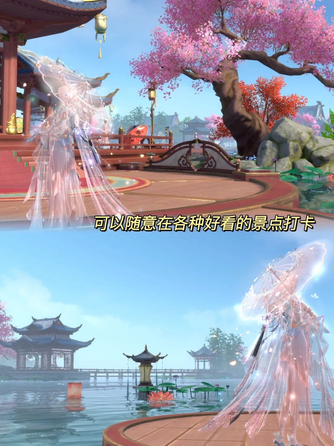 🌿捏完好看的脸,换上美美的衣服后,我们还可以在游戏的各个景点打卡拍照📷,在这个古风3D世界里,随便一拍都非常好看!(地图内还有江南非遗元素,等你探索哦)