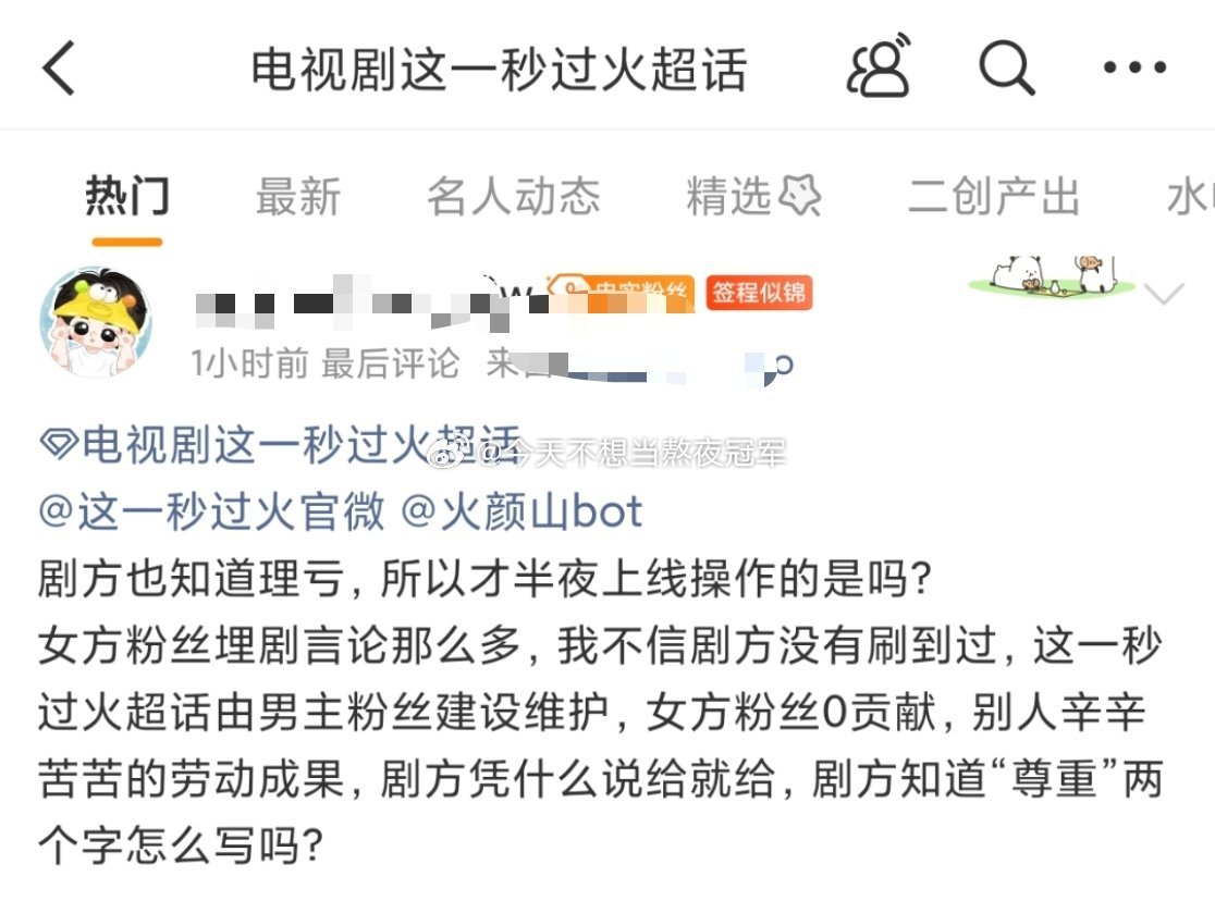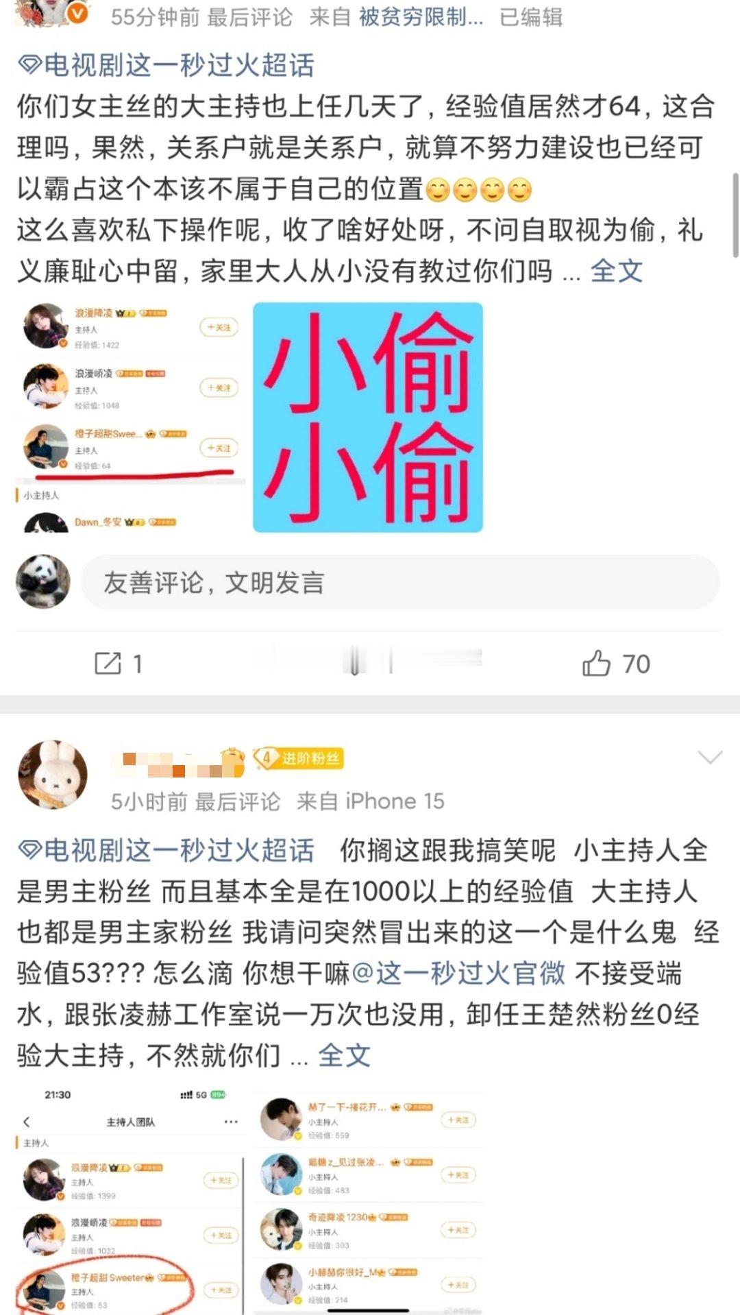《这一秒过火》剧超已沦陷好像是因为凌晨空降了王楚然大粉做主持人,张凌赫粉丝要求撤掉女主家的主持位。。。