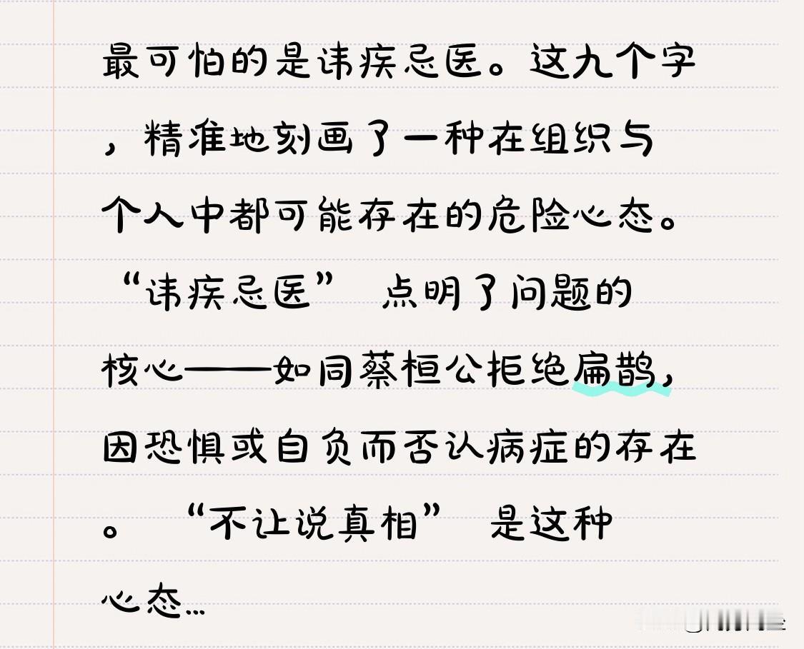 遇到问题,最可怕的是讳疾忌医。 这九个字,精准地刻画了一种在组织与个人中都可能存