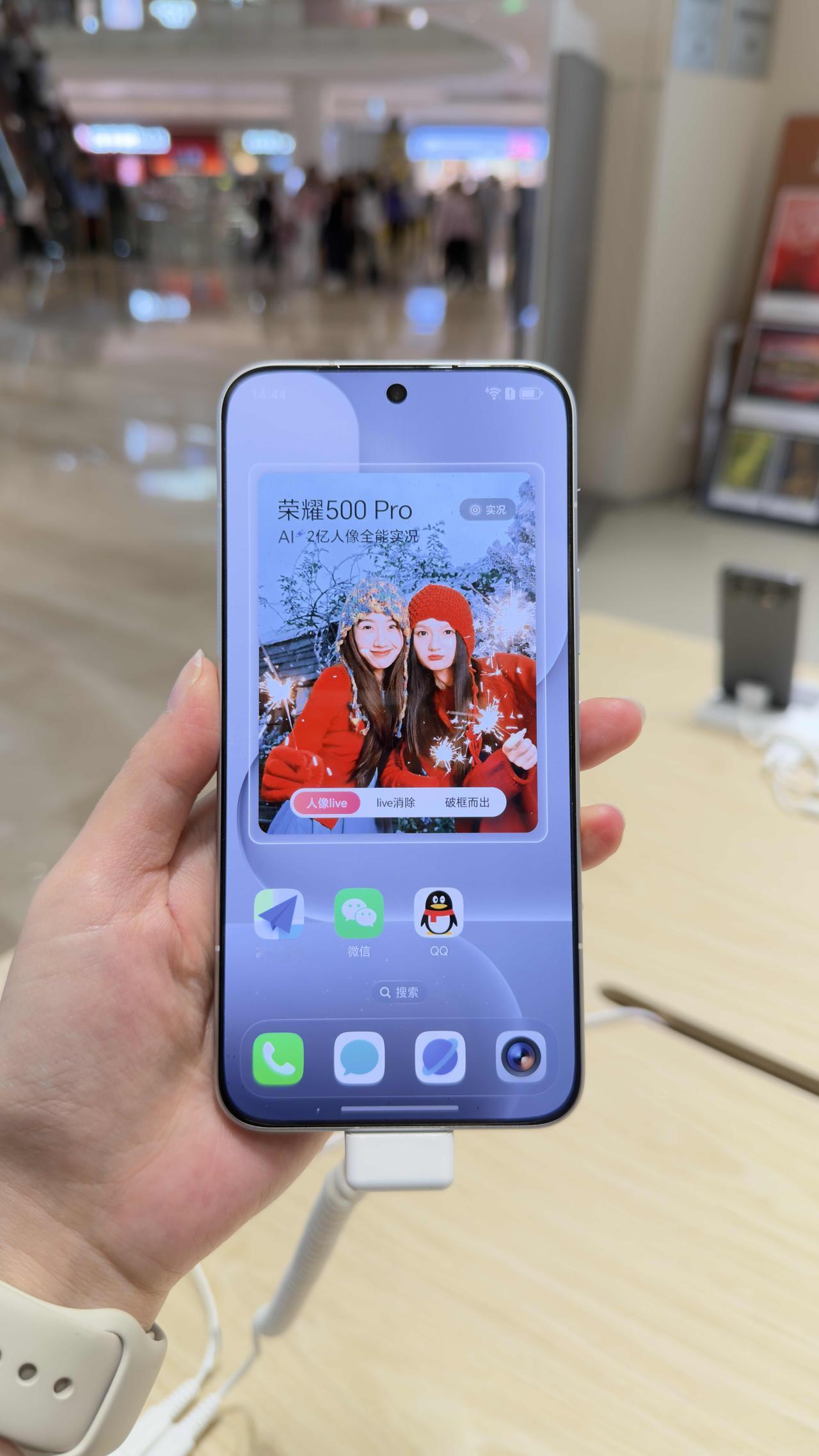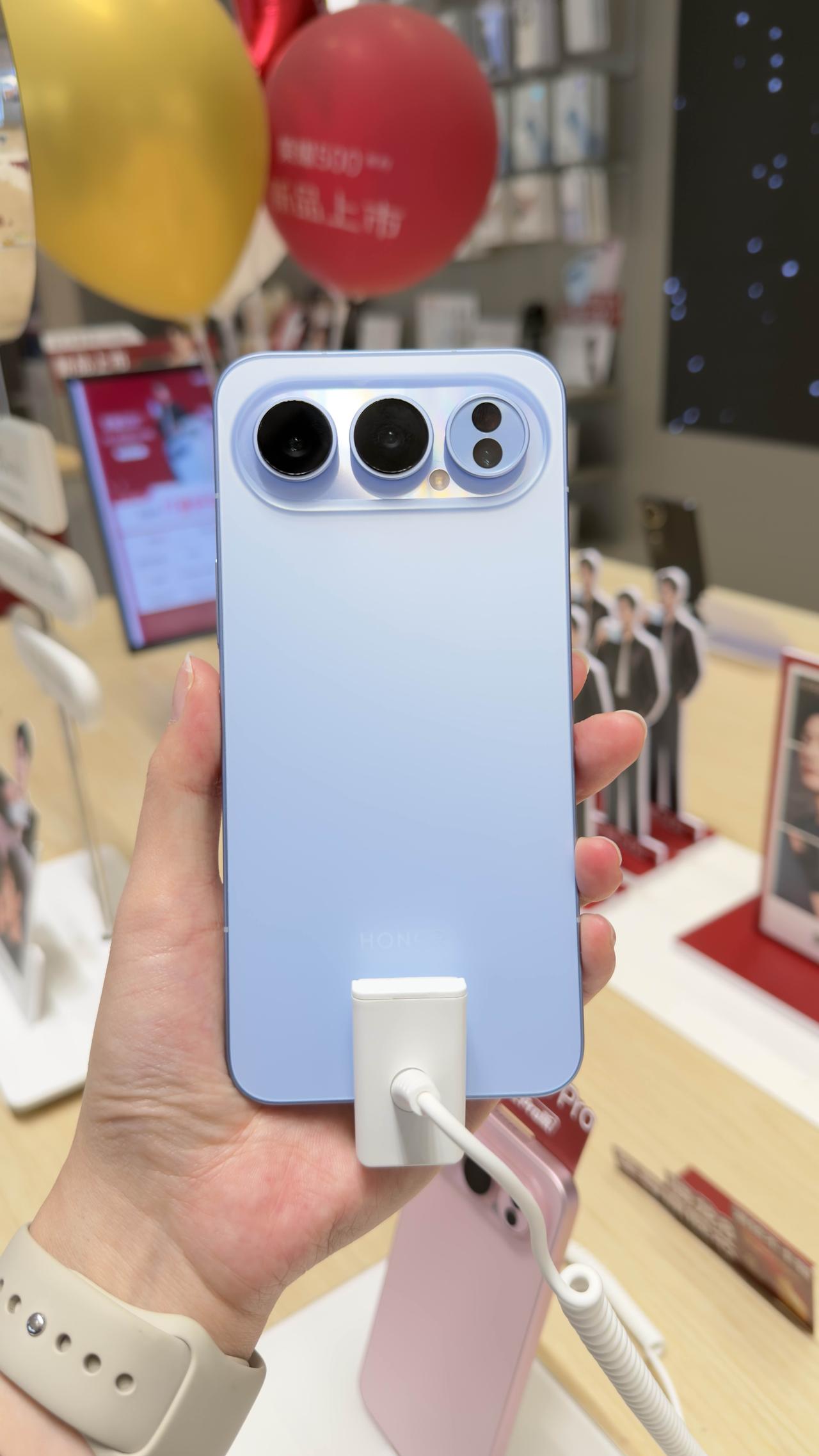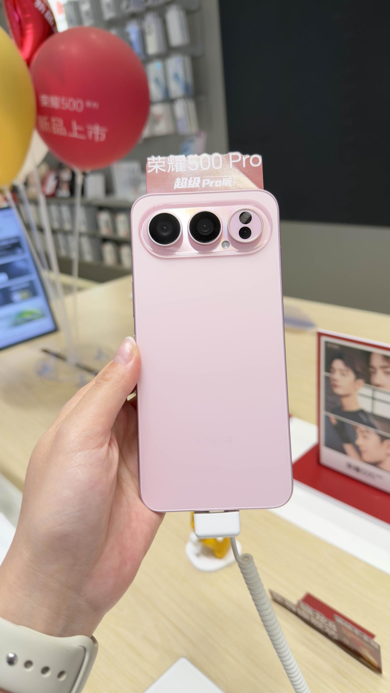 肖战同款荣耀500和荣耀500 Pro已经在门店展出,可以体验外观。与荣耀400系列对比了一下,感觉荣耀500系列手感更舒服一点。 粉色、蓝色、银色和黑色真的都太好看了,个人首选银色。