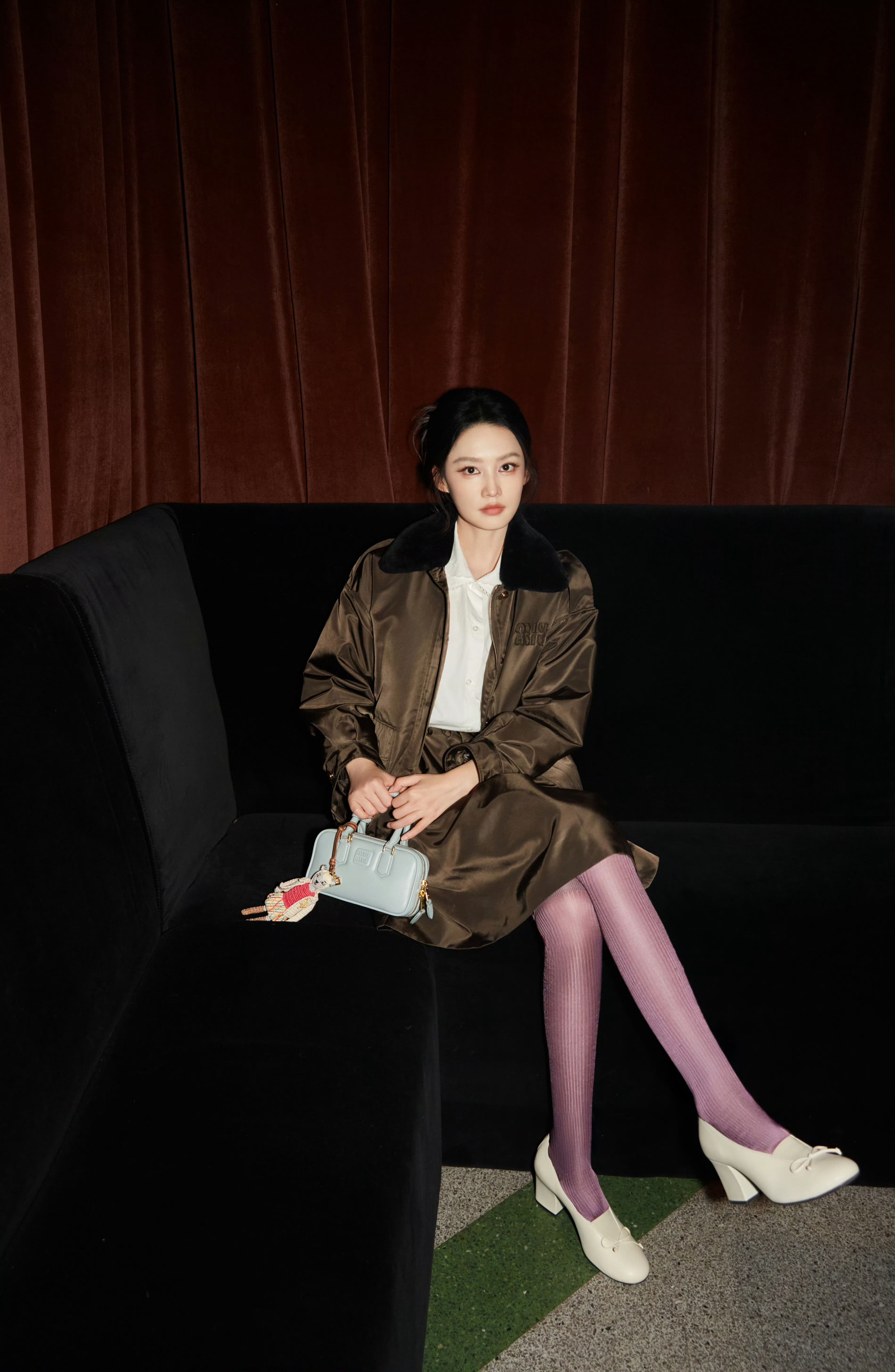 李沁 💜 miumiu文学俱乐部,紫色丝袜造型