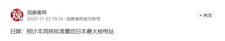 日媒:预计本周将批准重启日本最大核电站   日本这回是真打算动核电厂了,那座以前号称全球装机容量第一的柏崎刈羽核电站,听说这周就能拿到当地知事的批准,重新转起来了。不过先说明白,不是七个反应堆一股脑全开,这次就先试探着开一个,毕竟这事儿在日本吵了十几年,没人敢太冲动。   提起柏崎刈羽,这名字和它的争议一样大。它是东京电力旗下的大家伙,总装机容量超820万千瓦,最风光的时候是世界最大的核电站,专门给东京首都圈供电,地位特别关键。可它的安全记录,实在让人提心吊胆。   2007年新潟那场6.8级地震,震中离它才16公里,当时就搞出了变压器起火、核泄漏的乱子,东京电力还瞒着不报;2011年福岛出事以后,它就彻底停了。   没想到2021年又查出一堆安保漏洞,外人拿假身份证都能进中控室,监管部门直接下了运营禁令,这在日本核电史上还是头一遭。就算去年12月禁令解了,今年1月石川县地震,它的乏燃料池又漏了水,虽说没造成污染,也把周边老百姓吓出一身冷汗。   这回能推进重启,说白了是日本的能源家底快扛不住了。福岛事故前,核电占日本能源比例有30%,到2023年只剩8.5%。东部地区80%都靠火电,进口能源花老鼻子钱了,去年电价还一涨再涨,老百姓怨声载道。   可再生能源又不给力,光伏发电成本是核电的两倍多,海上风电项目也老卡壳,根本顶不上来。新上任的首相高市早苗直接说支持重启核电,毕竟《能源基本计划》都写了,2040年要把核电占比拉回20%,柏崎刈羽这种“大哥级”电站,自然成了重点突破口。   但阻力也一抓一大把。新潟县知事花角英世虽说打算这周点头,可12月还得闯县议会信任投票这关。当地民调显示,赞成和反对的各占一半,七成老百姓都不信东京电力能管好核电,福岛的烂摊子还没收拾完呢,东京电力之前交的审查材料就查出131处错误,现在突然说“安全了”,谁信啊?更有意思的是,东京电力给周边居民塞1000亿日元“好处费”,结果被骂成“贿赂”,反倒弄巧成拙。   更核心的是安全隐患压根没解决。新潟县本身就是地震高发区,柏崎刈羽的反应堆早年就查出地下支柱变形、有裂纹,这些老毛病真修好了?而且核废料处理就是个死结,日本喊了好几年“核燃料循环利用”,工厂建不起来,废料埋哪儿也没谱,重启核电站只会让这些“定时炸弹”越积越多。   所以这次重启更像一场“冒险试探”:先开一个反应堆看看情况,既给能源紧张松口气,也给后续推进留条退路。但不管怎么说,核电这东西,安全永远是第一位的。东京电力的信誉早摔碎了,日本又是个地震大国,真要是再出点岔子,可不是补个漏洞、赔点钱就能了结的。周边国家也都盯着呢,核污染的影响从来不分国界,这步棋走得有多险,恐怕只有日本自己最清楚。