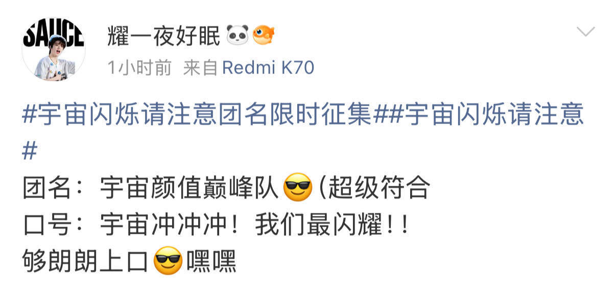 《宇宙闪烁请注意》在线征集团名和口号,第一次见还在录制的节目,粉丝先起上名字了目