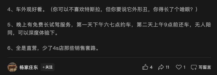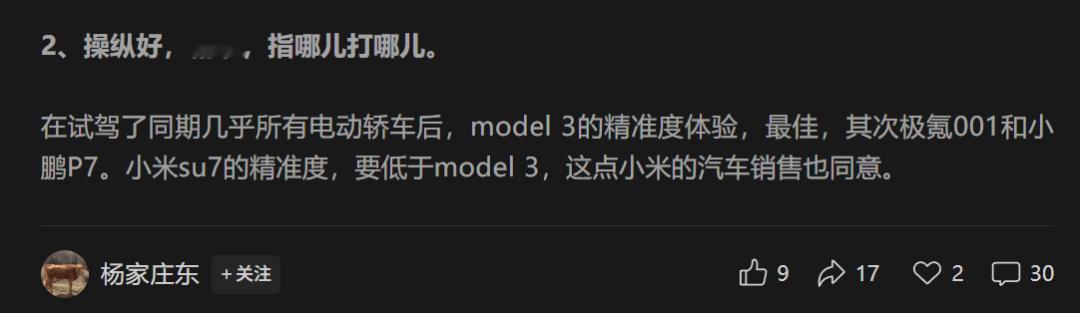 网友杨家庄东试驾一晚上直接下订Model3,小米销售也表示,SU7操控精准度确