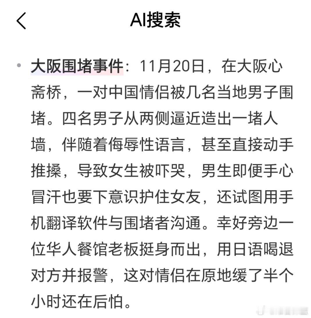 “不听话,这就是后果!”11月20日,一对中国情侣在大阪旅游,被几个日本人围堵,吓哭了。唉!看了之后,一声长叹。