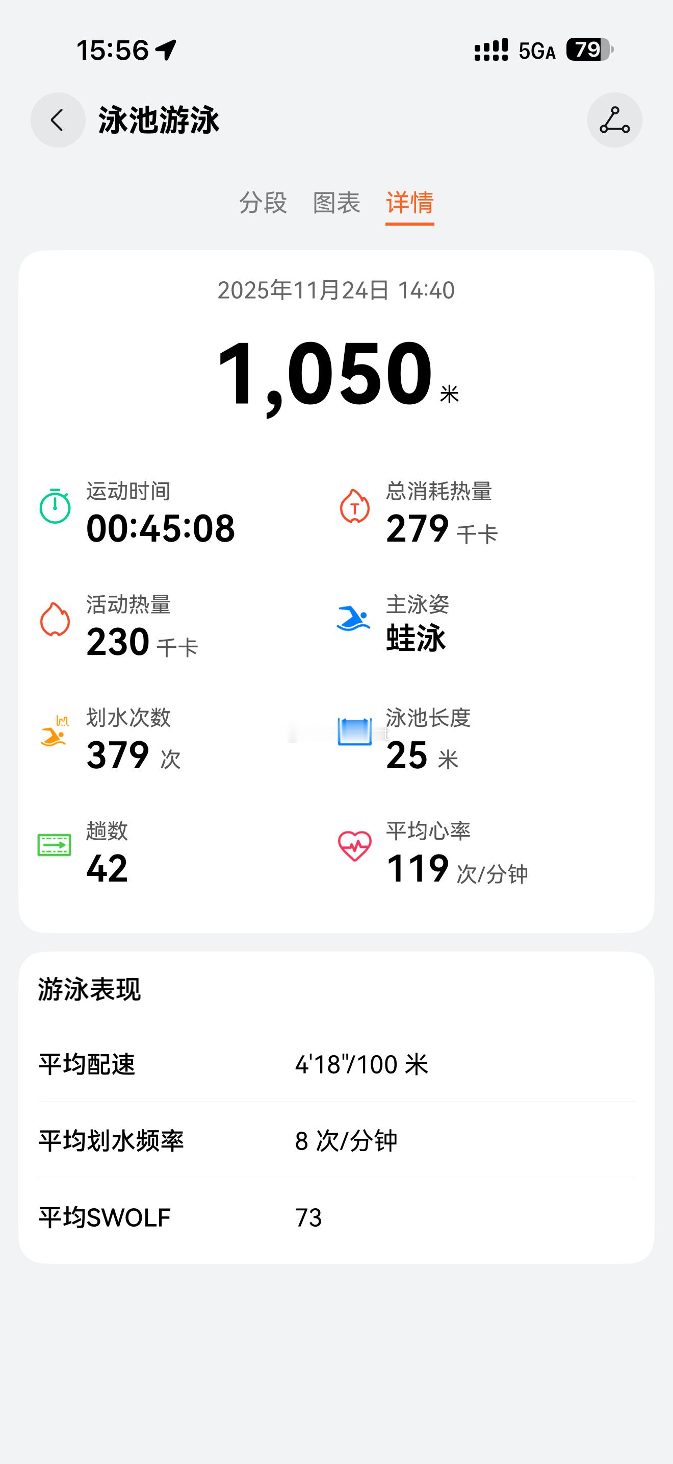 游泳1000米游到了45分钟,有点进步。