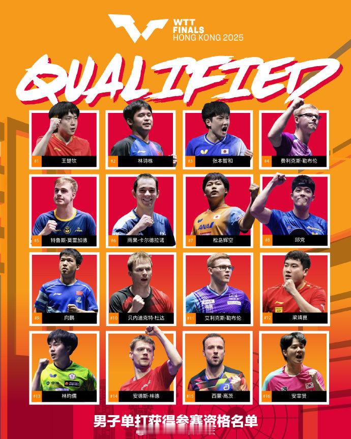 【】 11月24日, 发布香港总决赛最新参赛名单,其中男单、女单、混双三项均已满员。男单王楚钦、林诗栋、张本智和、菲利克斯勒布伦前四号位;女单孙颖莎、王曼昱、张本美和、陈幸同前四号位,混双林诗栋蒯曼、林钟勋申裕斌、松岛辉空张本美和前三号位。