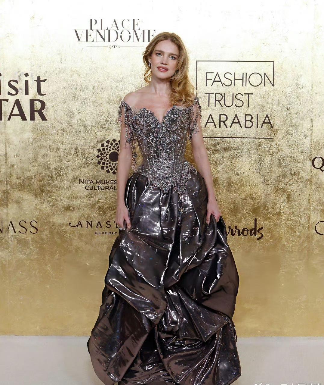 岁月从不败美人,LV太子妃正是将这句话活成了具象化! 11月22日,LV太子妃娜塔丽·沃佳诺娃出席2025年阿拉伯时尚信托基金颁奖典礼。 她身穿Christian Lacroix1996春夏礼服,一头金色大卷发,颜值和气质都在线,肌肤光泽细腻,一点都看不出已经是个年过半百,并且生育了四个孩子的妇人。 LV太子妃有着水果娜的别称,她的这一系铁灰色抹胸裙,也格外显高级,更相当有科技感。对于一个年过半百的女性而言,驾驭这样风格的服饰是有一定难度的,但是年过半百的娜塔莉依旧年轻貌美,而气质又带着岁月的风韵,反而完美演绎了这条礼服的风采。