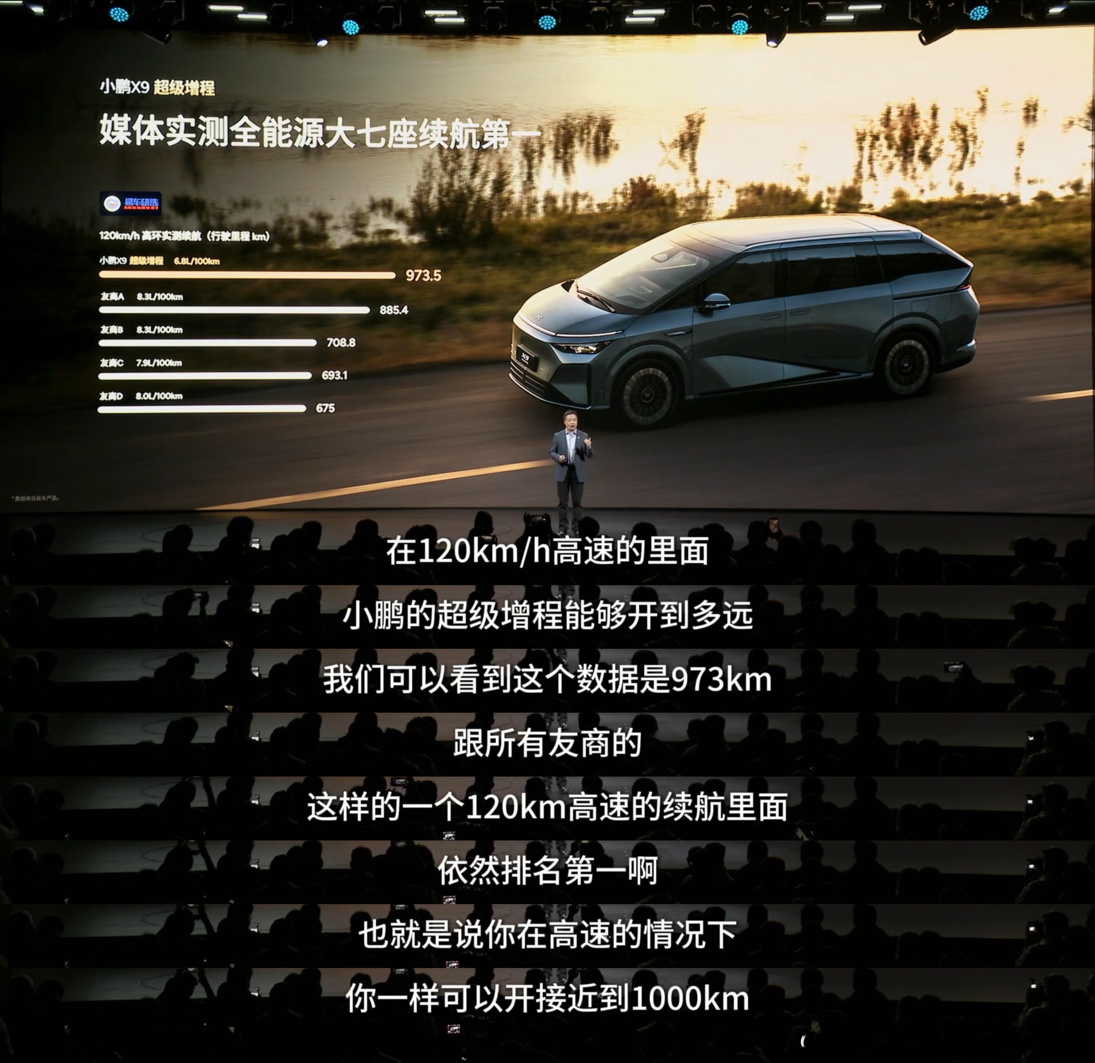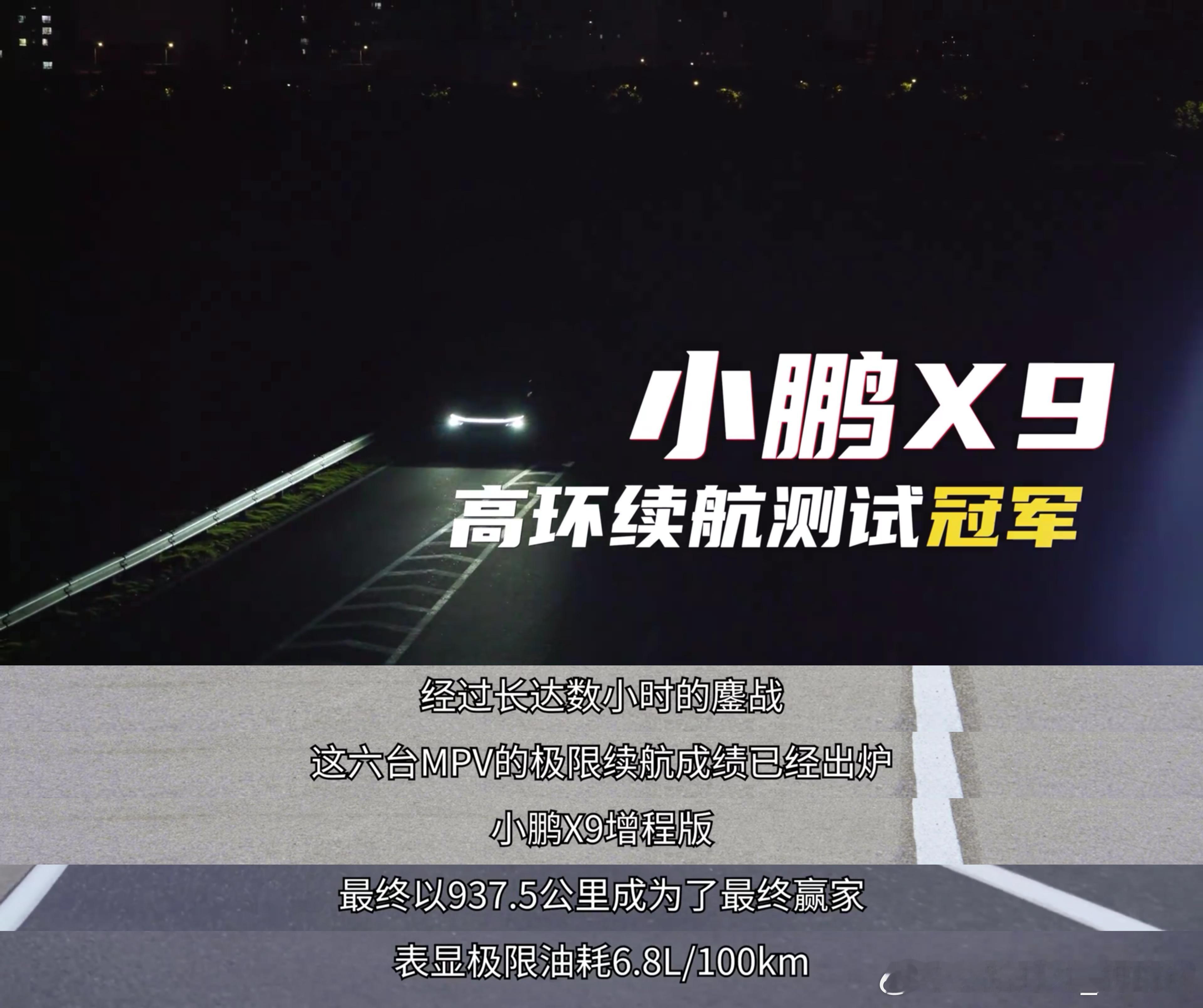 鹏增程非彼增程!都是增程也分高下!在易车2025年主流家用MPV横评中,小鹏X9超级增程在高环极限续航测试中,凭借937.5km的成绩登顶第一!
