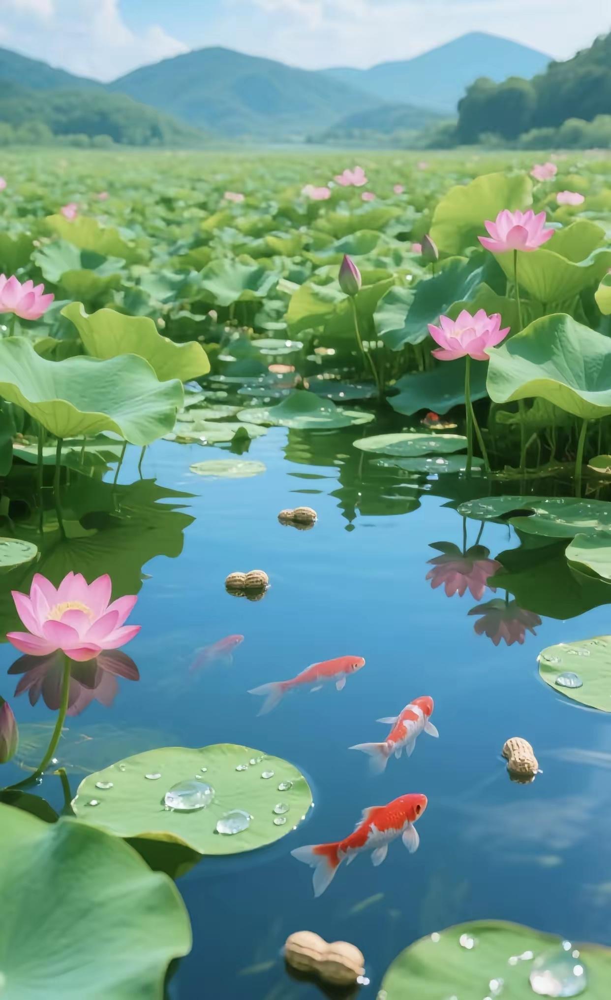 夏至睡莲醒, 秋分逢菊黄。 横批:《莲醒与菊黄》