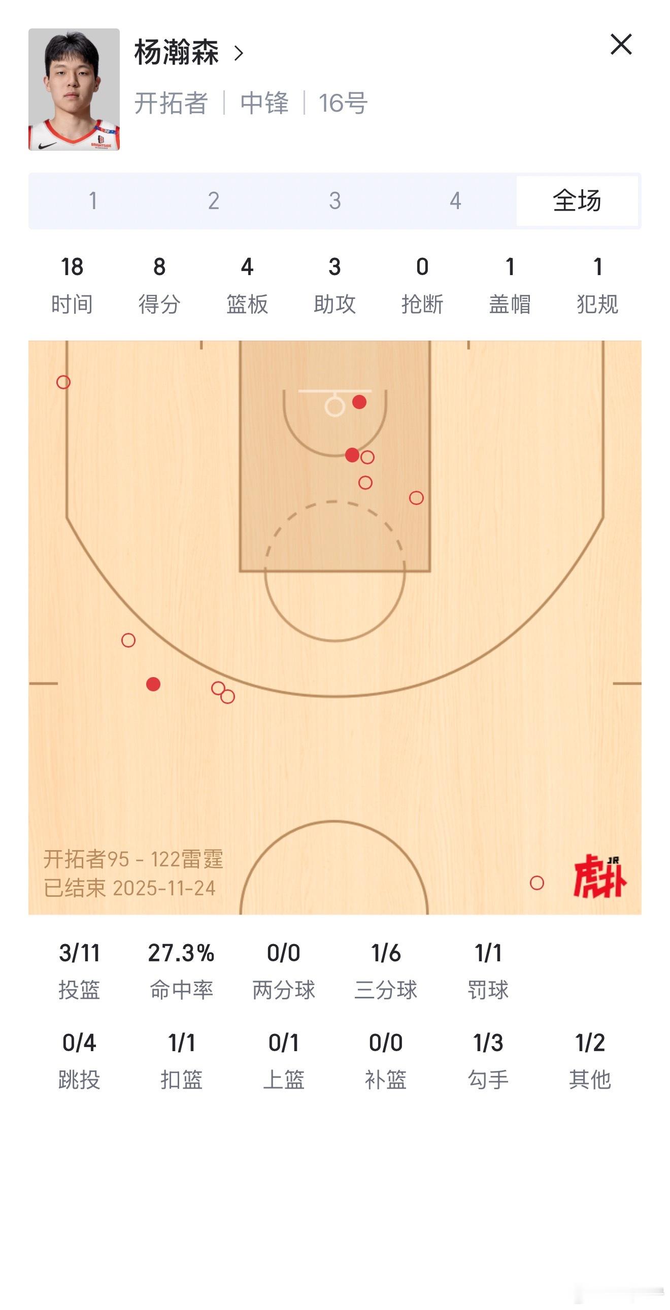 感谢雷霆一节就把比赛打花了 这场比赛出手机会挺多,可惜命中率不高,希望下一场能调整好一些