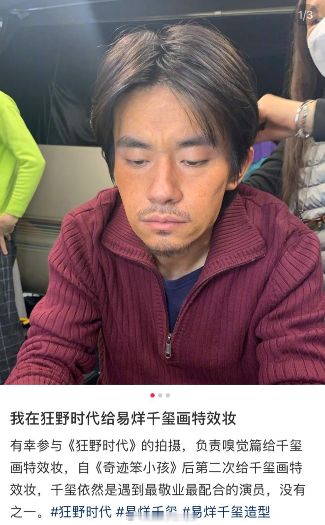 给易烊千玺化特效妆的化妆师大夸易烊千玺:“遇到最敬业最配合的演员,没有之一。”