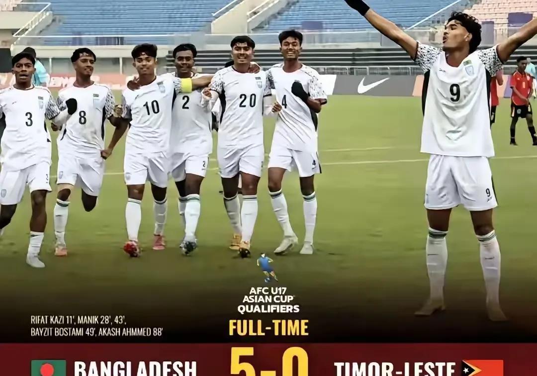 孟加拉国U16也是纸老虎,一戳就穿!中国U16国少上半场就已经6比0东帝汶了,孟加拉国也才5比0东帝汶,虽然孟加拉国第二战13比0文莱,看样子很厉害,其实从对东帝汶已经明了,中国队实力明显在孟加拉国之上,中国U16国少在亚预赛就是独一档,孟加拉国不可以阻挡中国队,中国队必将全胜小组第一出线,中国U16国少加油!