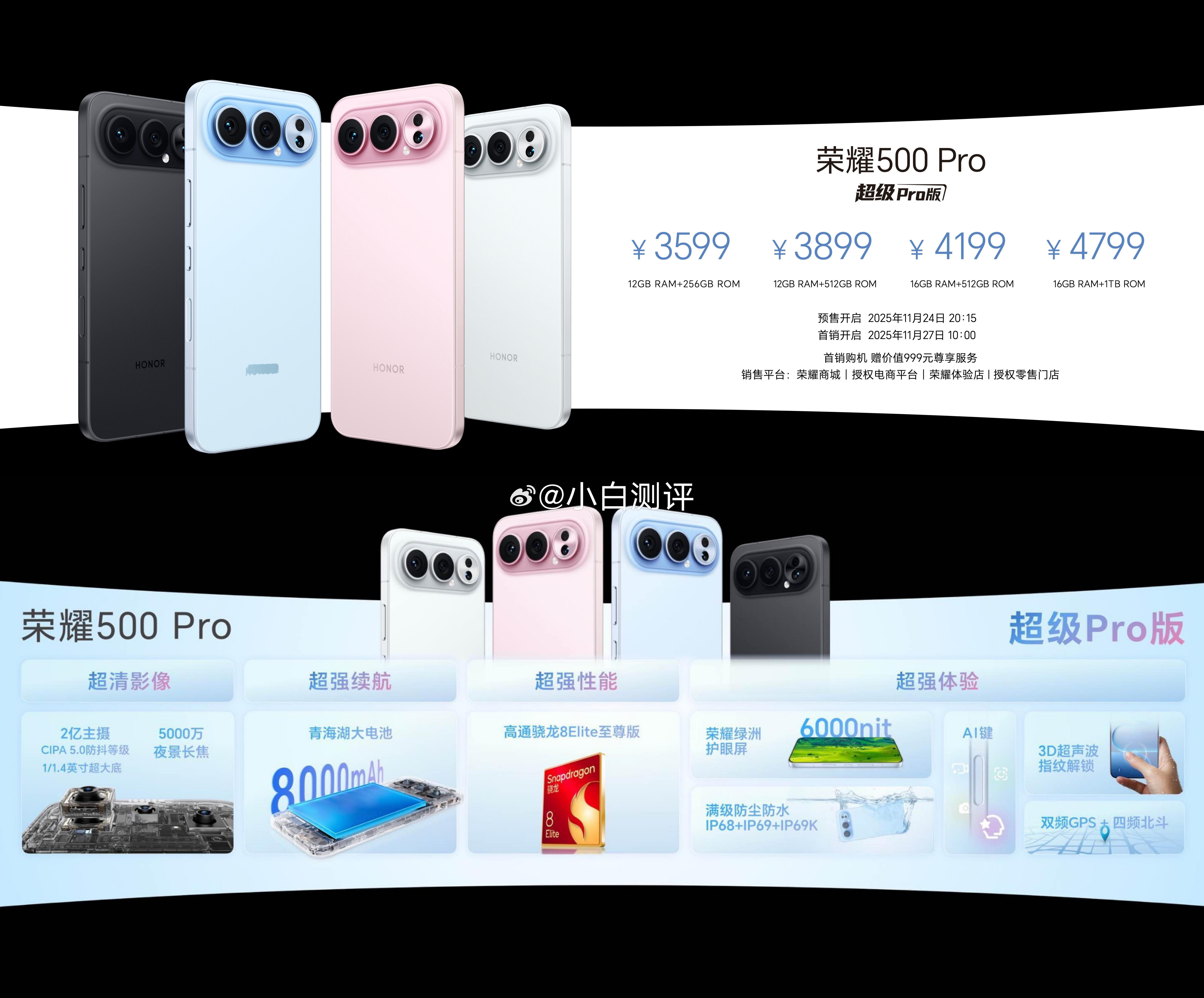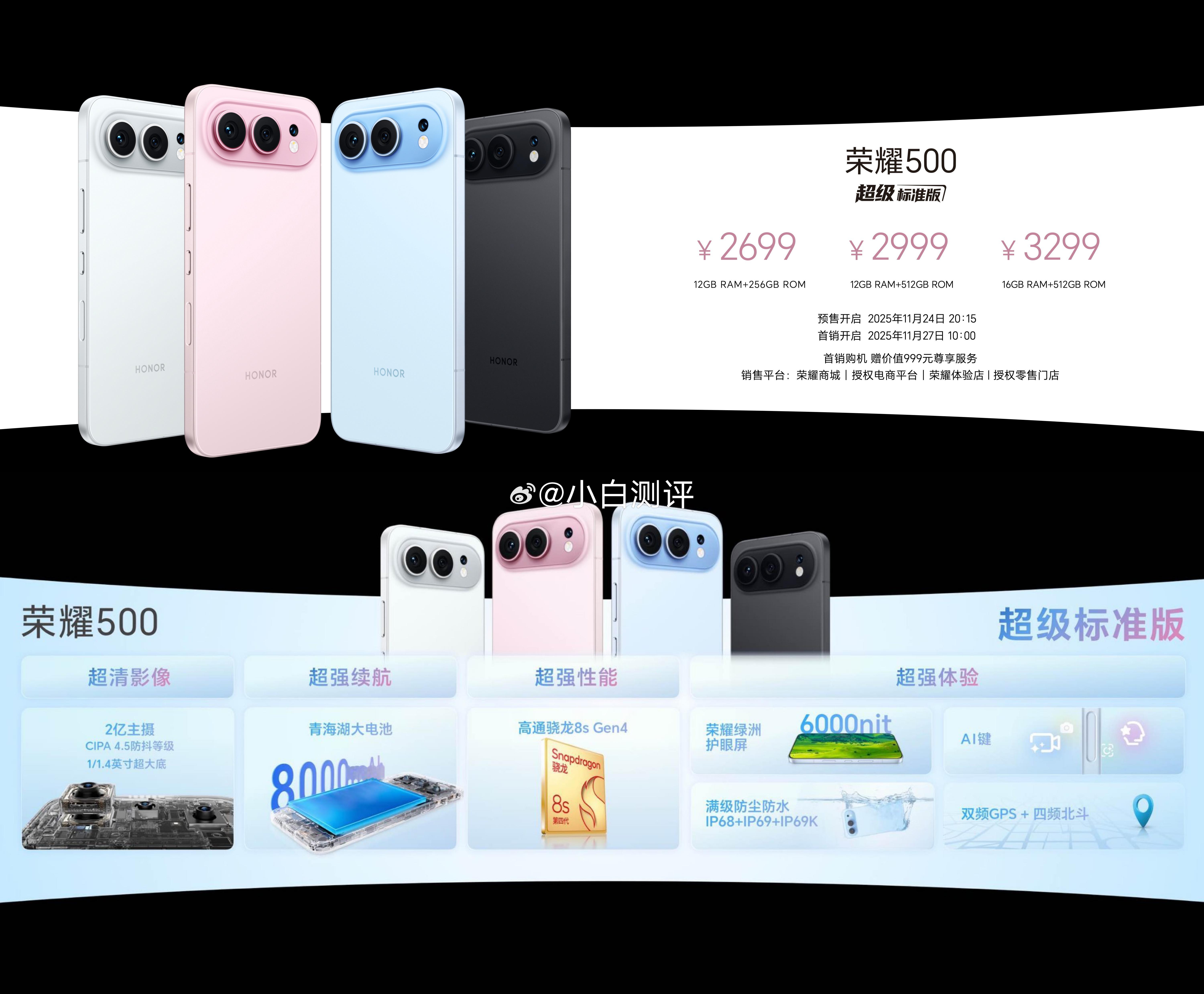 荣耀500系列价格公布荣耀500:12+256GB 2699起荣耀500 Pro:12+256GB 3599起这价格怎么样?
