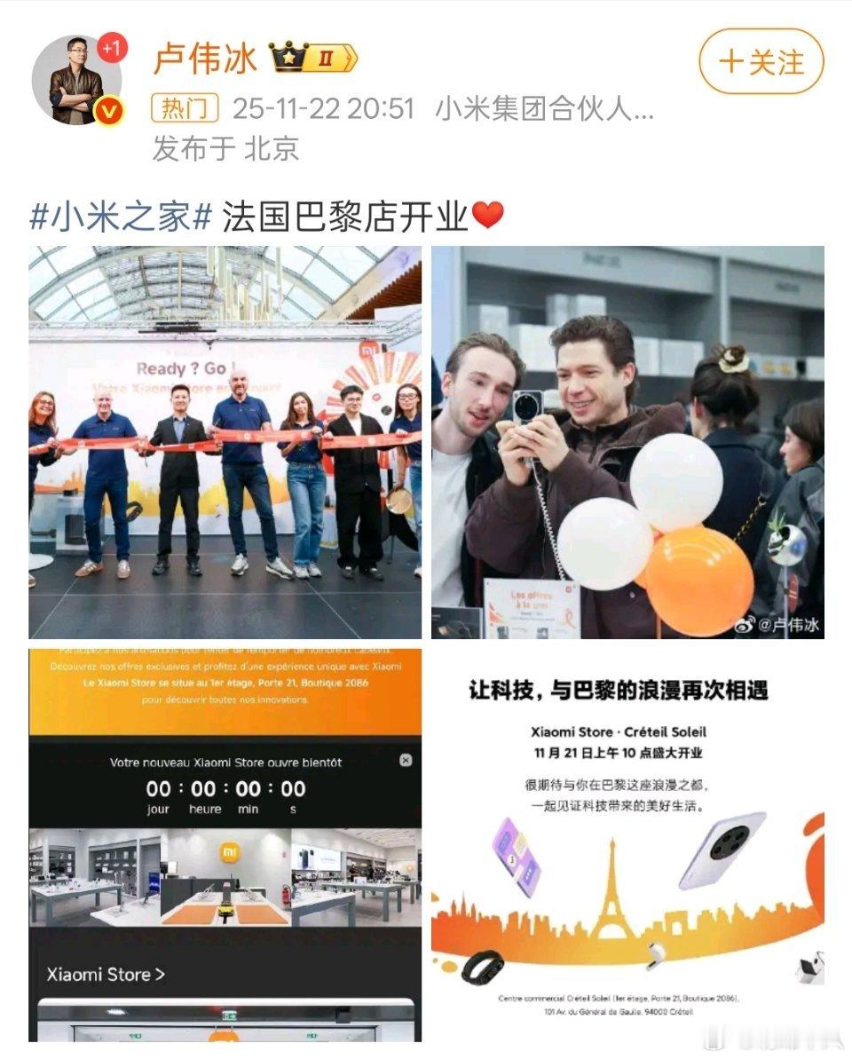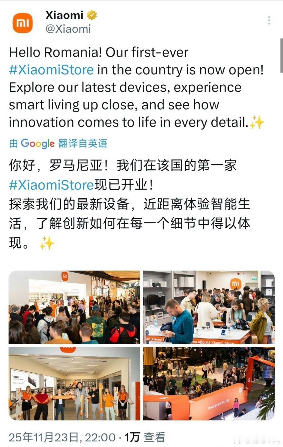 近期小米出海的两则要闻:小米之家巴黎店和罗马尼亚店前后开业。希望下一步就把小米汽