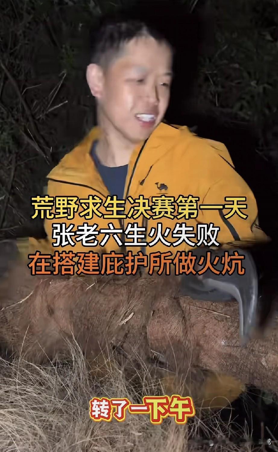 荒野求生张老六第一天就栽在生火上了 刚蹲到荒野求生决赛第一波素材,给我看乐了——号称“野外在住40多天”的张老六,开局就翻了车:拿着工具转了一下午,火就是没生起来,旁边人直接开怼:“这我得批评你了啊!” 他一边扒拉着草搭庇护所的火炕,一边嘴硬:“昨天刚下雨,材料都潮了!”可观众都懵了:野外生存的老炮儿,连雨天取火的招都没有? 镜头里他那满头汗的样子,到底是真失手还是节目效果?要说经验足吧,生火这关都没过;要说演吧,那手忙脚乱的劲儿又太真实… 你们觉得这是“老司机”翻车,还是为了节目效果故意卖惨?