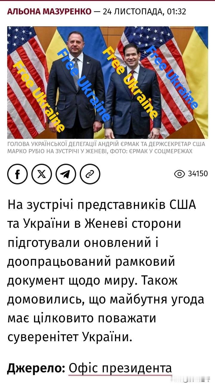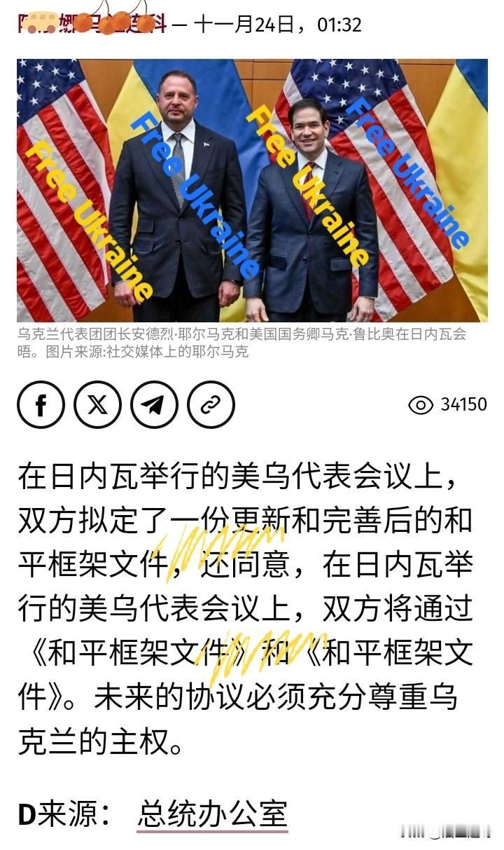 日内瓦美乌会谈,美乌发表联合声明: 会谈富有成效,此次有诚意。 双方拟订了一份新的和平框架。 未来的协议必须充分尊重乌克兰的主权。 乌克兰感谢美国,感谢川总。 会谈继续进行,会与欧洲保持密切联系。 👨👩👧👦大概就这些。 美乌和平谈判 乌克兰 聚焦俄罗斯乌克兰局势