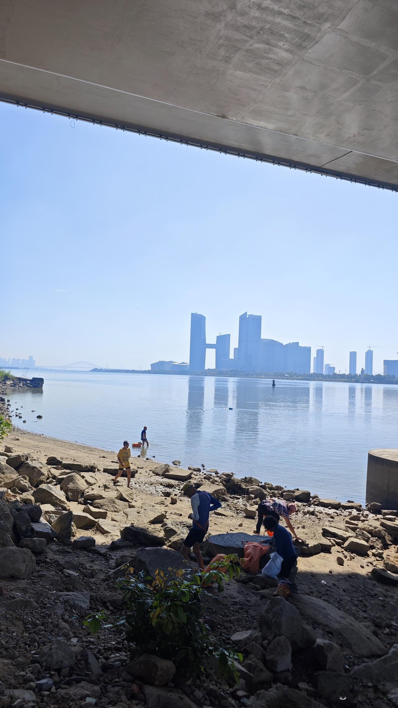 想玩小沙滩,何必南沙湾。凤凰大桥桥底就藏了一个小沙滩,面积不大,沙也少,但是还算干净,而且超多小贝壳。重要的是就在蕉门,一台电鸡跑过来就能浅玩一两个小时。重要的是桥底位置还能露营,桥底也有小水滩,玩着不怕晒另外一边靠体育馆的也有一片小沙滩,沙子更多一点,也更干净。 不过记得要在退潮时候才有沙滩露出,涨潮的时候就不太好玩了。 由于是野滩,来这边玩记得注意安全哦。 具体位置看图片。 PS:刚好遇到一批老当益壮的老人来野泳,真的是太佩服他们了。
