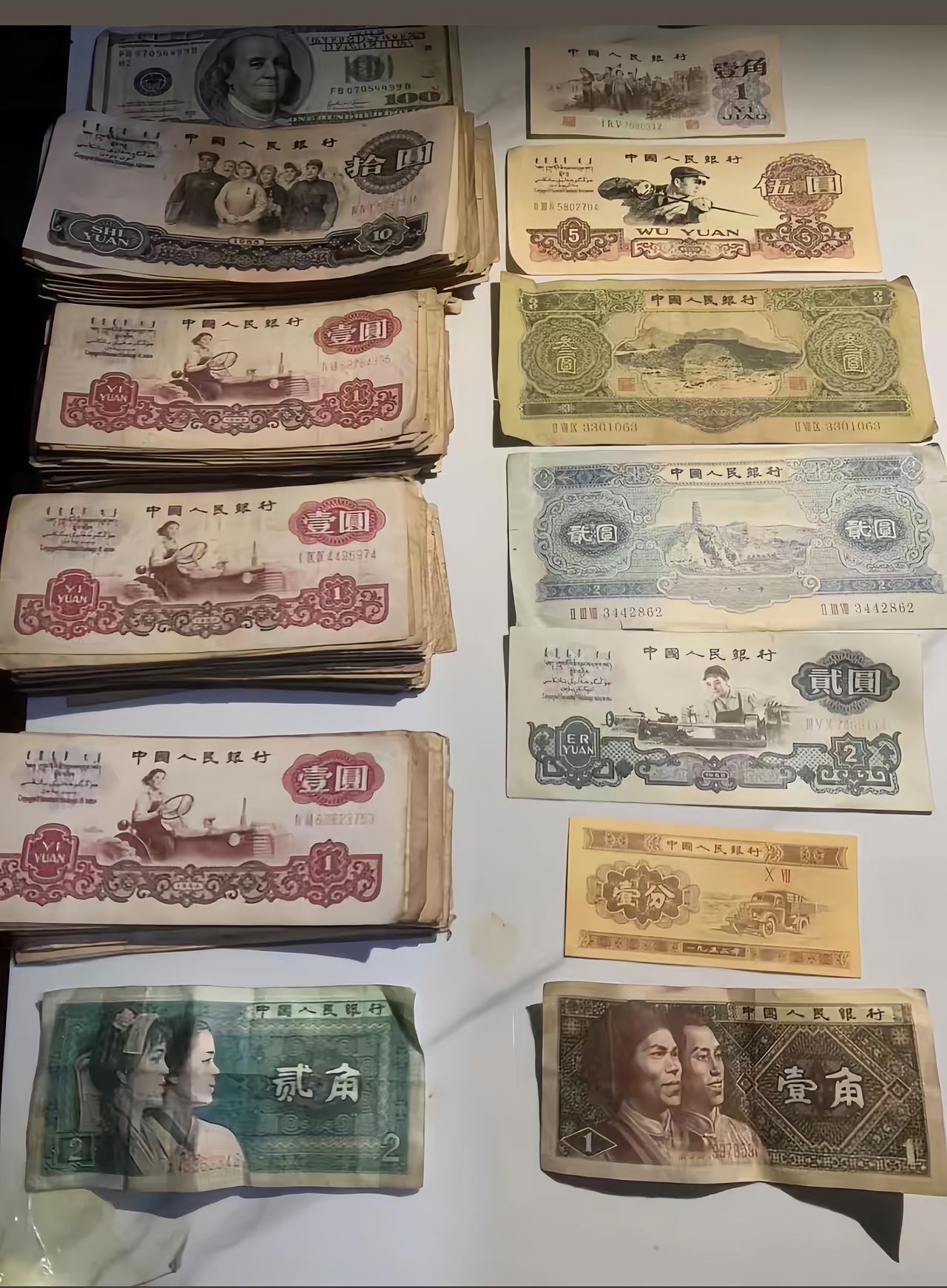 外婆衣柜里翻出的“旧宝贝”, 现在还能花吗?🤔 今天收拾外婆的衣柜,意外发现一沓旧纸币,第二套、第三套、第四套人民币都有,还有一张老版美元。这些老纸币虽然不能直接花了,但它们可都是“硬通货”!像第三套的“炼钢工人”5元,品相好的能值几百块;第四套的10元、1元虽然还能流通,但收藏价值早就超过面值了。 这些纸币不仅是外婆的旧时光,更是能换钱的“宝贝”。外婆笑着说,这是她攒了一辈子的“念想”。你家有没有这样的旧纸币?别再当废纸了,说不定能换好几顿火锅!