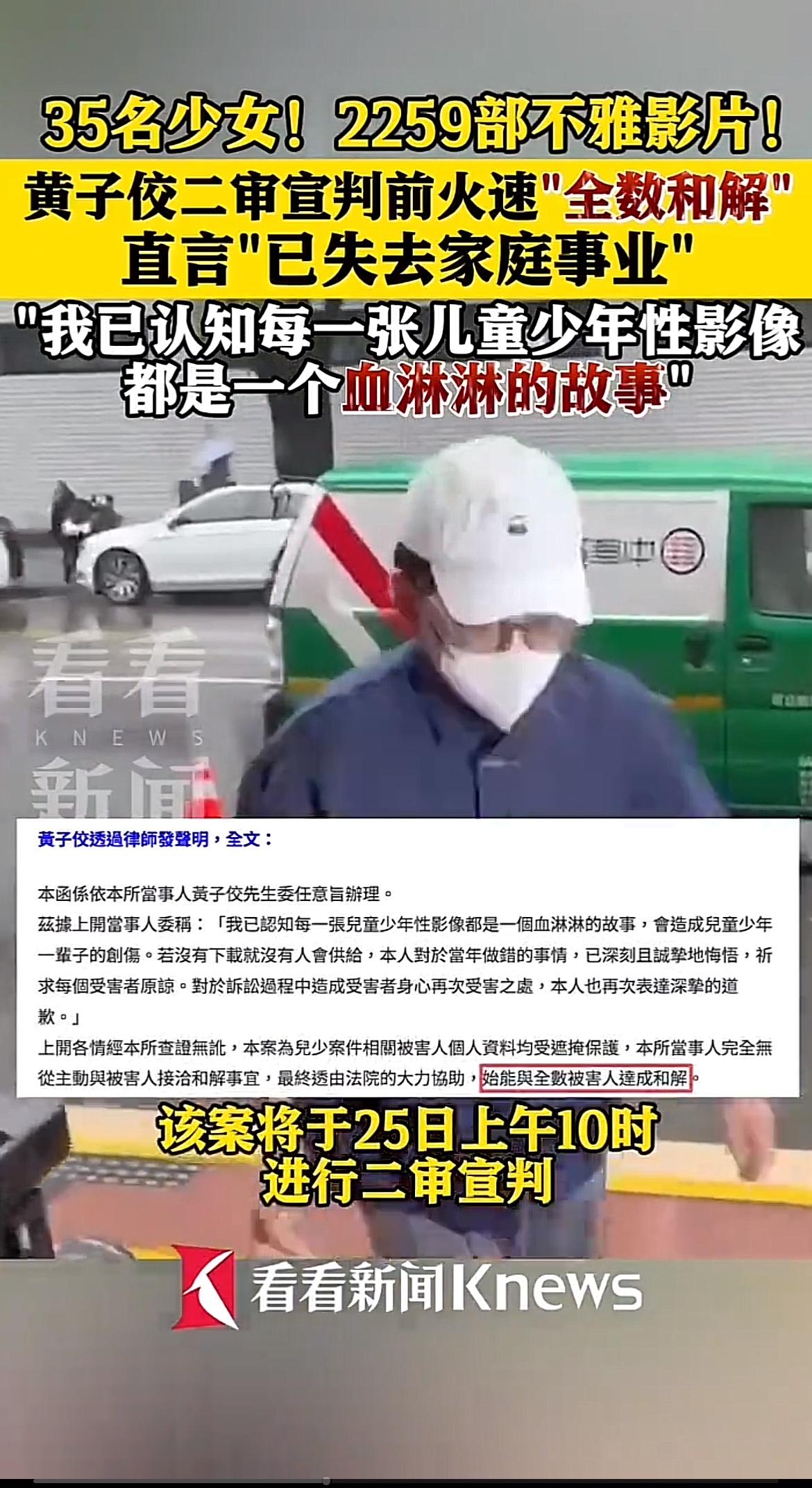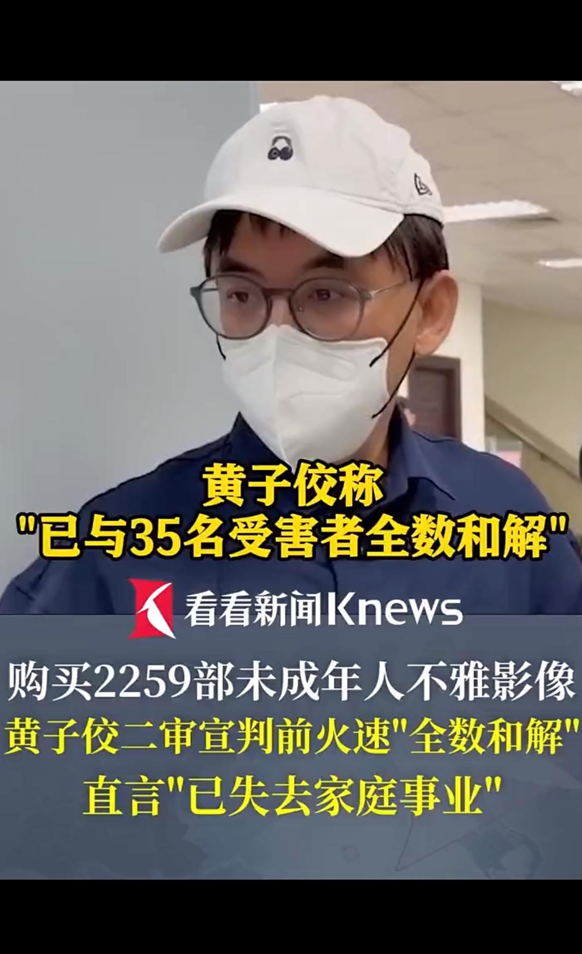 黄子佼这事儿真是反转不断。他因持有未成年少女不雅视频被起诉,一审被判8个月有期徒刑。一开始他几乎不认罪,上诉后态度大转变,积极和解。他以数万到20万新台币不等的金额,逐一和被害人和解。8月20日现身法院时,他头戴白色棒球帽,一身深蓝衬衫配灰底格纹裤,面对镜头鞠躬。如今他和所有被害人均已和解,还发声明认错。不过被害人称他与“遭诱骗拍摄影片”无关,下载多为成年性影像,且下载时间在法律明令禁止前,认为他情节被“过度放大、渲染”。但不管怎样,他的事业算是毁了,这也给公众人物敲响了警钟。