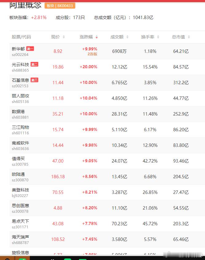 阿里阿里灵光+金融科技:恒银科技阿里+酒店信息化:石基信息阿里+AI+电商SaaS:光云科技阿里+美妆电商:丽人丽妆阿里+云服务:数据港阿里+零售:三江购物