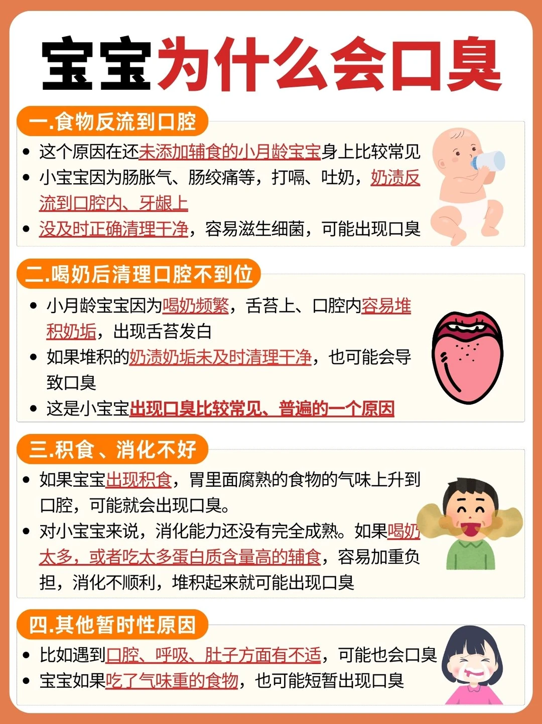 之前总觉得宝宝嘴巴里面有股酸臭的气味,一开始还以为是喝奶多积食了。儿保时咨询大白才知道,宝宝的口腔清理要好好做😂即使是没有长牙的宝宝,也是要保持口腔卫生。因为小宝宝出生起就要频繁喝奶,平时残留的奶渍沉积在宝宝的口腔、牙床、舌头上,容易滋生细菌出现口臭。