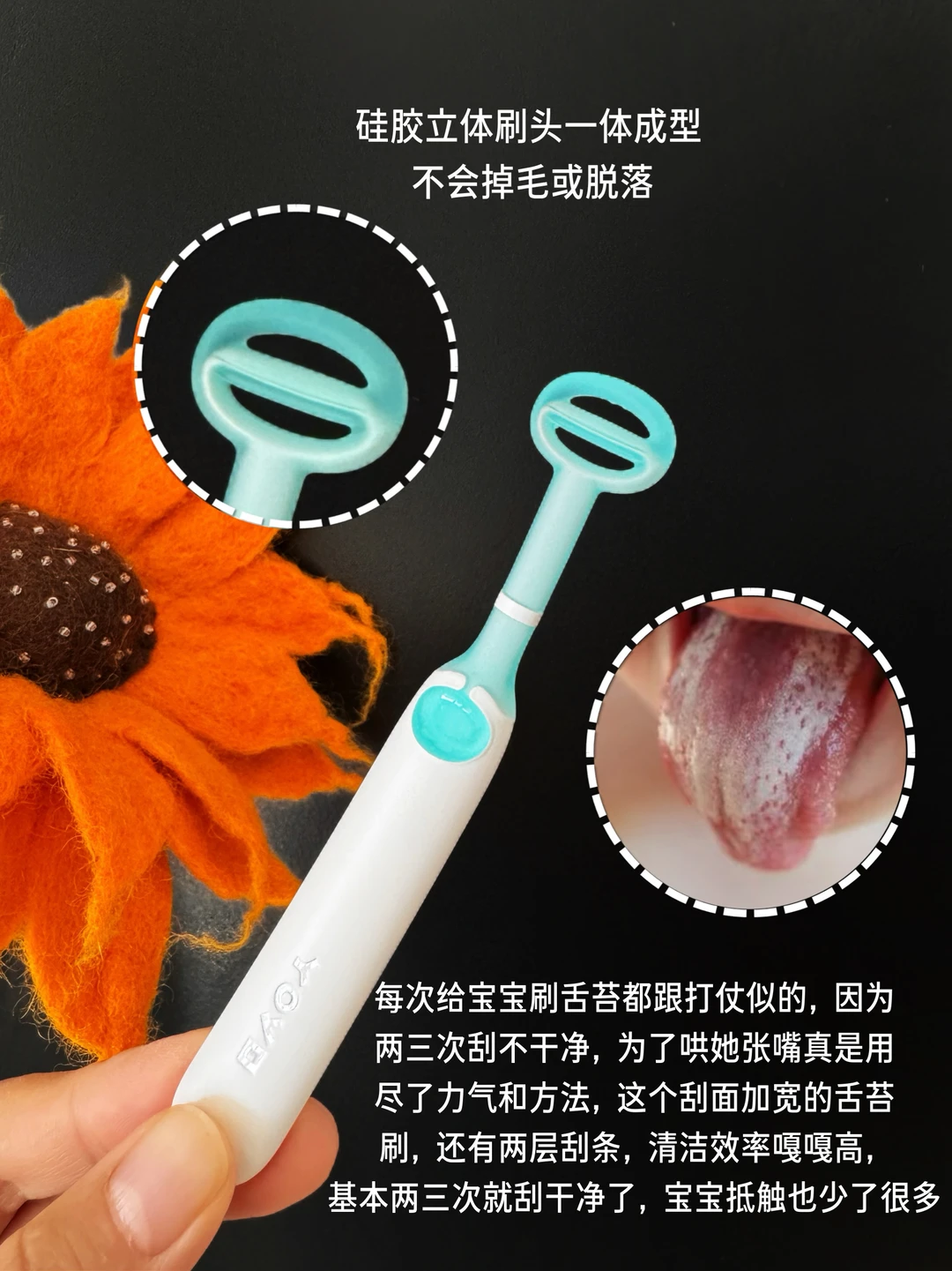 说实话,一胎时作为新手妈妈踩得坑也不少,一开始入了纱布棉签,硬邦邦的棍子包着棉纱布,掉絮不说,宝宝乱动还容易戳到。后面又跟风选了指套刷,可是手指那么粗,惹得宝宝哭闹不说,接触面还小,来来回回清理半天都没“扫”完,用了一次就被婆婆制止了。