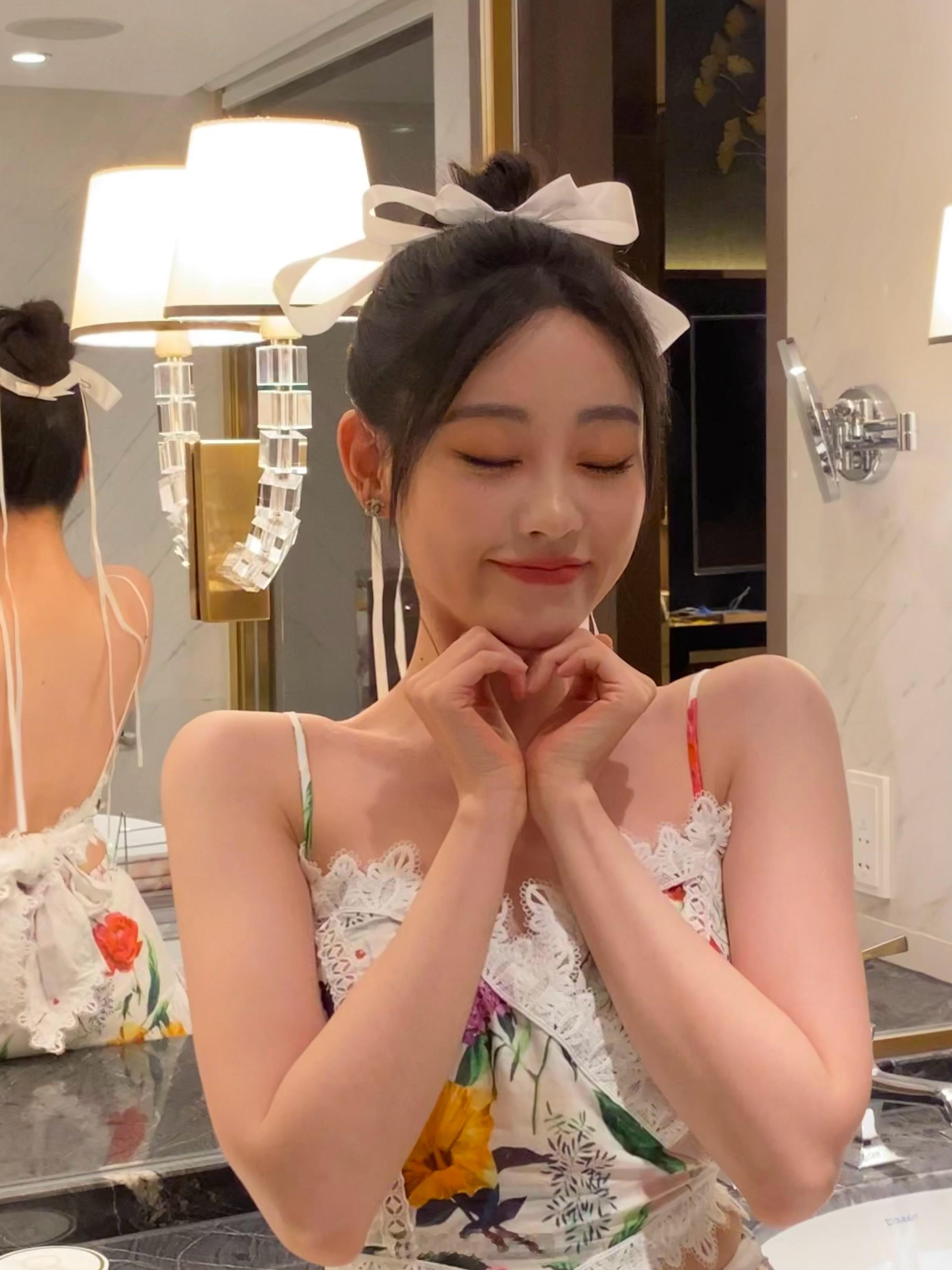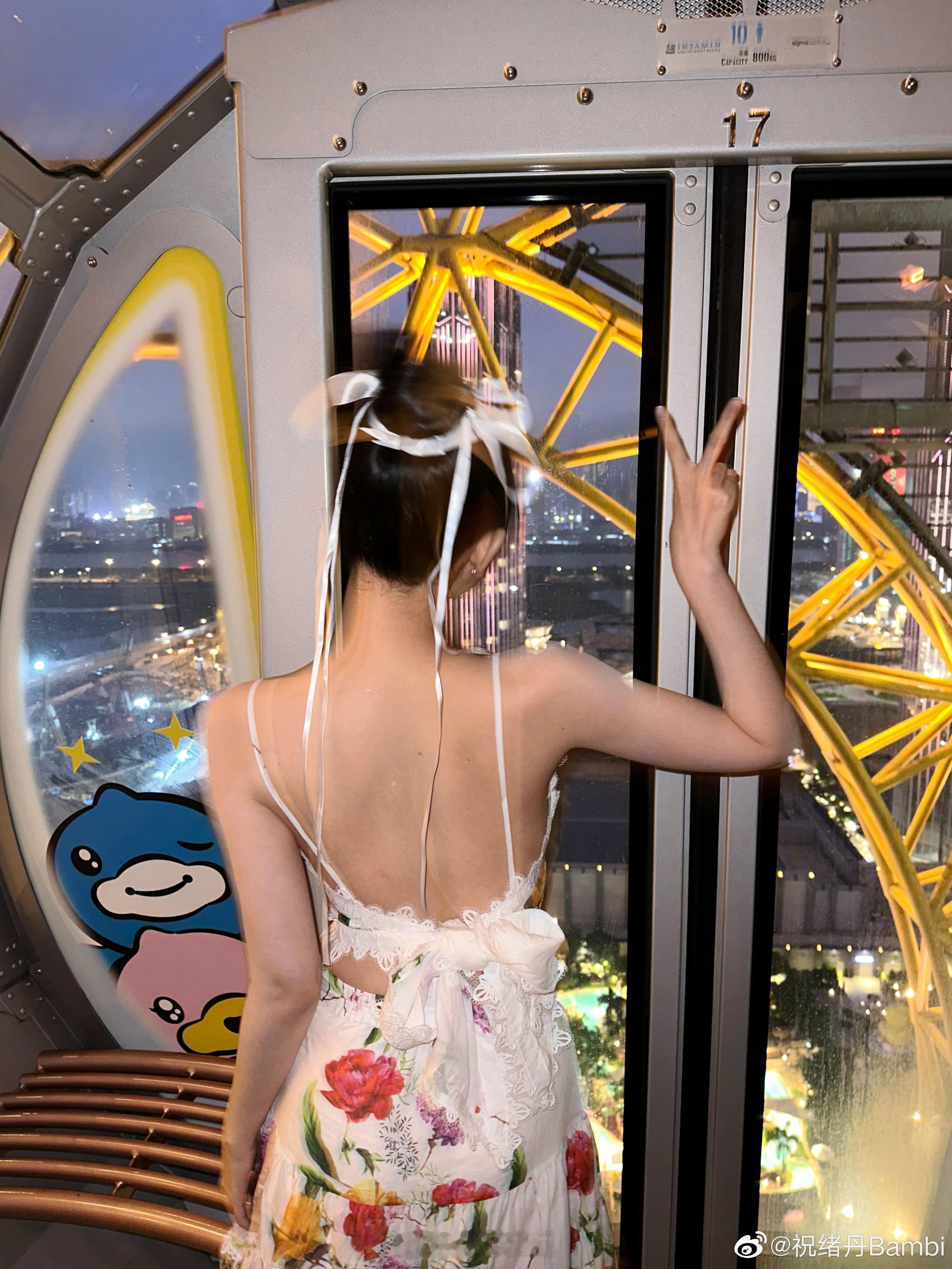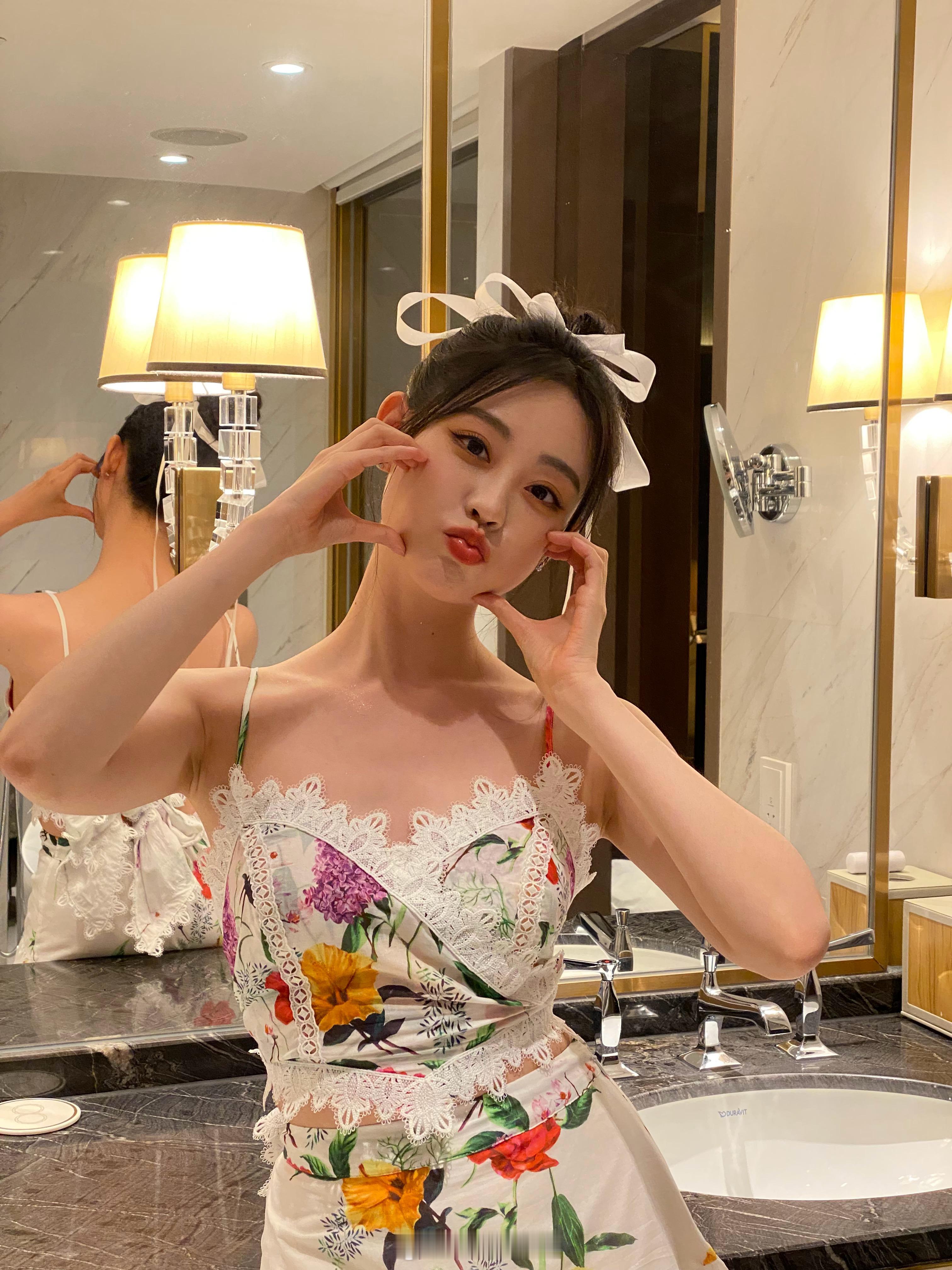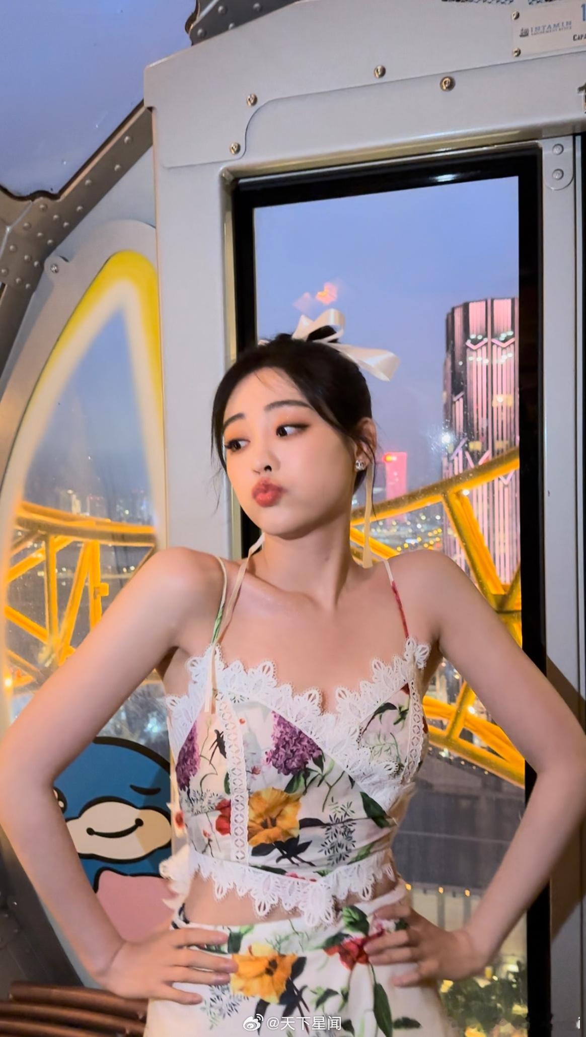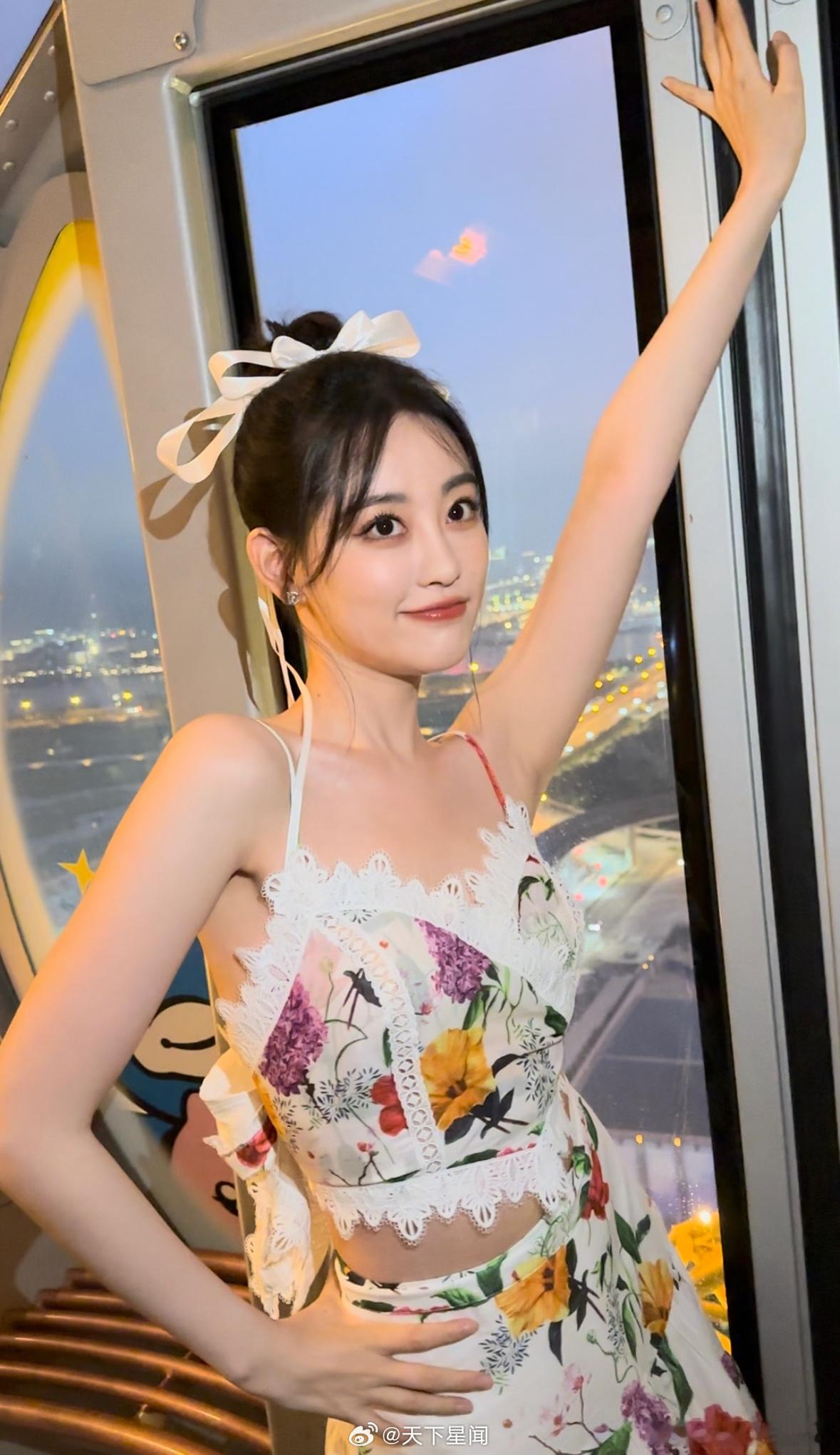 祝绪丹穿浅黄纱裙气质明媚娇俏,表情生动宛如在逃公主